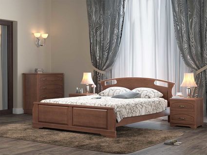 Двуспальная шикарная кровать Афродита 1 из массива бука с низким изножьем - это лучший выбор для Вас и Вашей семьи. Сложные гнуто-клееные элементы декора кровати, превосходно впишутся в любой интерьер. Кровать из массива ценной породы дерева – бука - гарантия экологической чистоты в Вашем доме. Такие кровати отличаются долговечностью и надежностью. Вся мебель покрывается высококачественным полиуретановым лаком (Испания), что защищает поверхность от царапин и прочих повреждений.