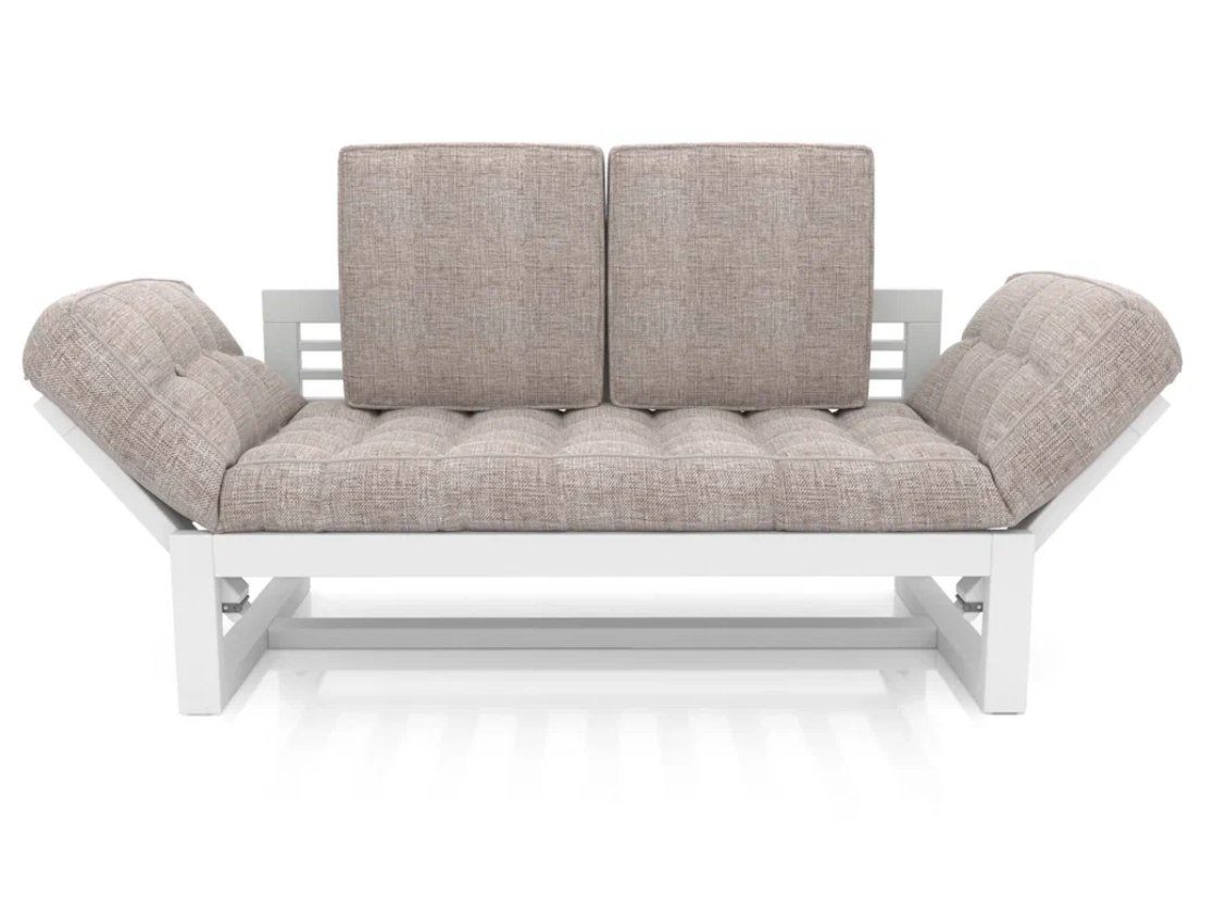 Балтик – удобная и достаточно компактная кушетка, которая может органично вписаться в любой интерьер, как в квартире, так и в загородном доме. Каркас изделия выполнен из массива сосны – натурального и экологически чистого материала. Надежная и простая конструкция за считанные секунды может превратить удобную кушетку в запасное место для сна, что может пригодиться задержавшимся гостям. Трансформация осуществляется за счет изменения положения подлокотников. У данной модели есть 3 вариации каждого подлокотника: вертикально вверх, под углом и в горизонтальном положении. Чехол матраса несъемный, сам матрас крепится к реечному основанию каркаса специальными лентами-застежками, благодаря чему сидит как влитой. На кушетке спокойно могут сидеть 2 взрослых человека, вес каждого может быть до 140 кг. Сидеть взрослому человеку на разложенном подлокотнике не рекомендуется – это может привести к поломке изделия. Подлокотники служат опорой для ног или верхней части туловища одного человека, когда он лежит или находится в полулежачем положении.