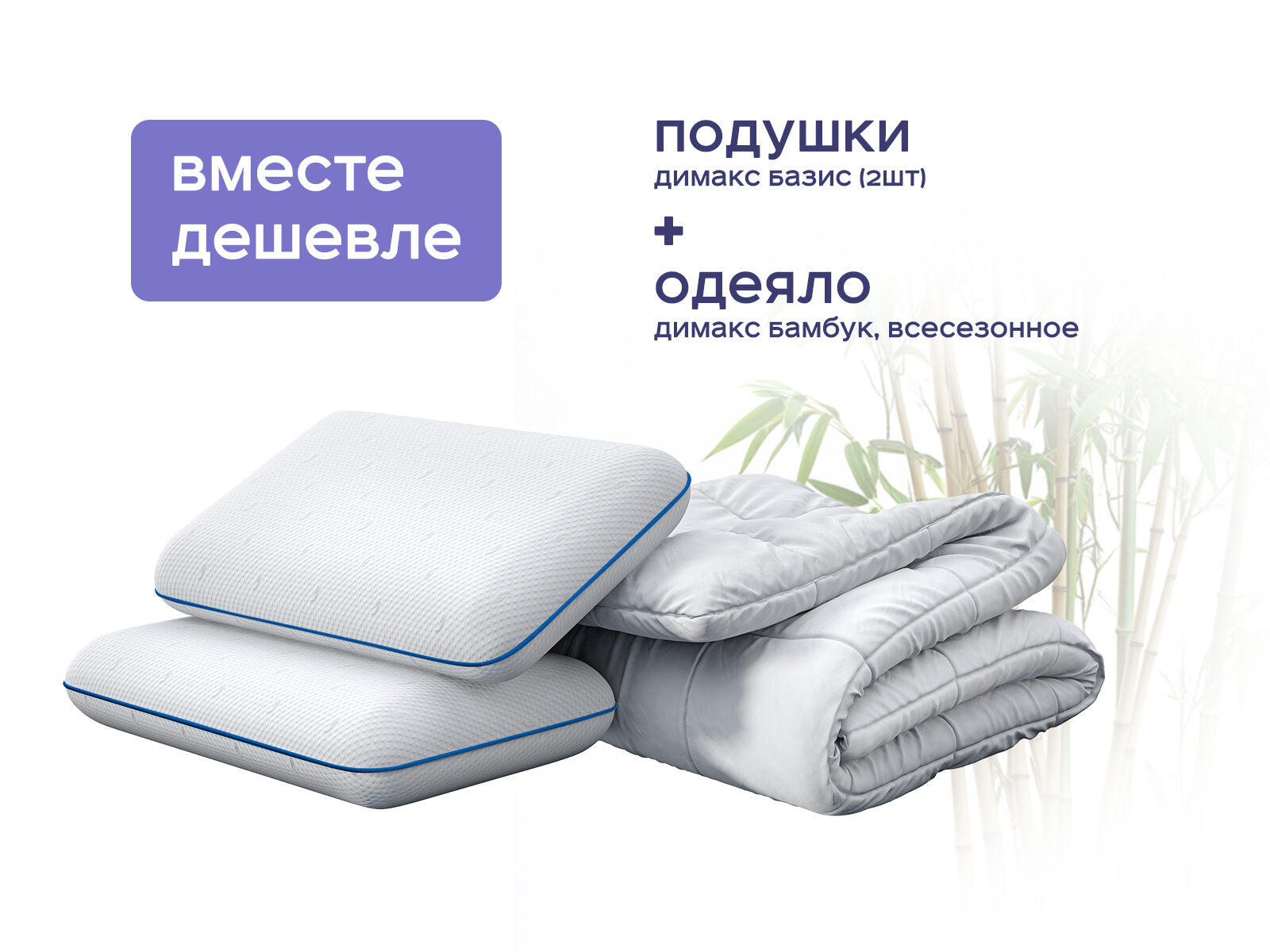 Комплект одеяло Димакс Бамбук всесезонное + подушка Димакс Базис 2 шт. — гармония природной свежести и анатомического комфорта. Покупая набор, вы экономите до 48% и получаете экологичное решение для сна: одеяло с бамбуковым наполнителем и две анатомические подушки, которые вместе создают условия для здорового отдыха в любое время года. Забудьте о компромиссах между поддержкой и терморегуляцией — этот комплект работает с персональной подстройкой для вашего тела.