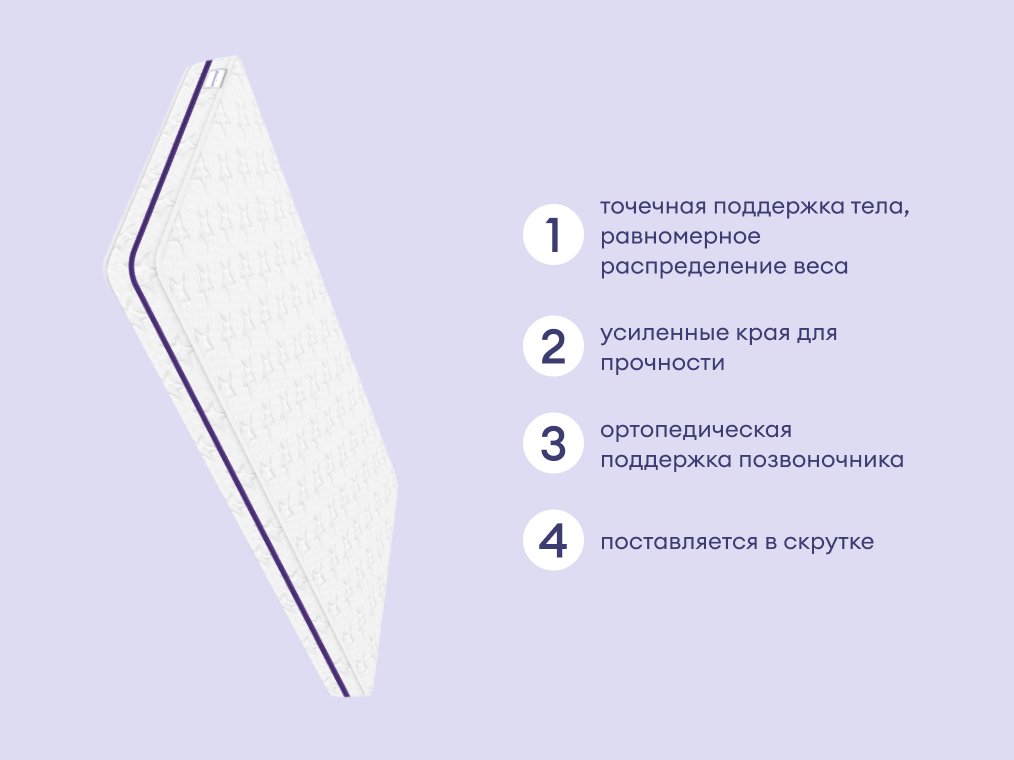 Базилик Бэби Мун – ортопедический комфорт с независимой поддержкой для детей разных возрастов. Матрас оснащён независимым пружинным блоком и рассчитан на нагрузку до 100 кг, что делает его подходящим как для маленьких детей, так и для подростков. Классическая средняя жёсткость и надёжные наполнители обеспечивают удобство и правильное положение позвоночника во время сна.
