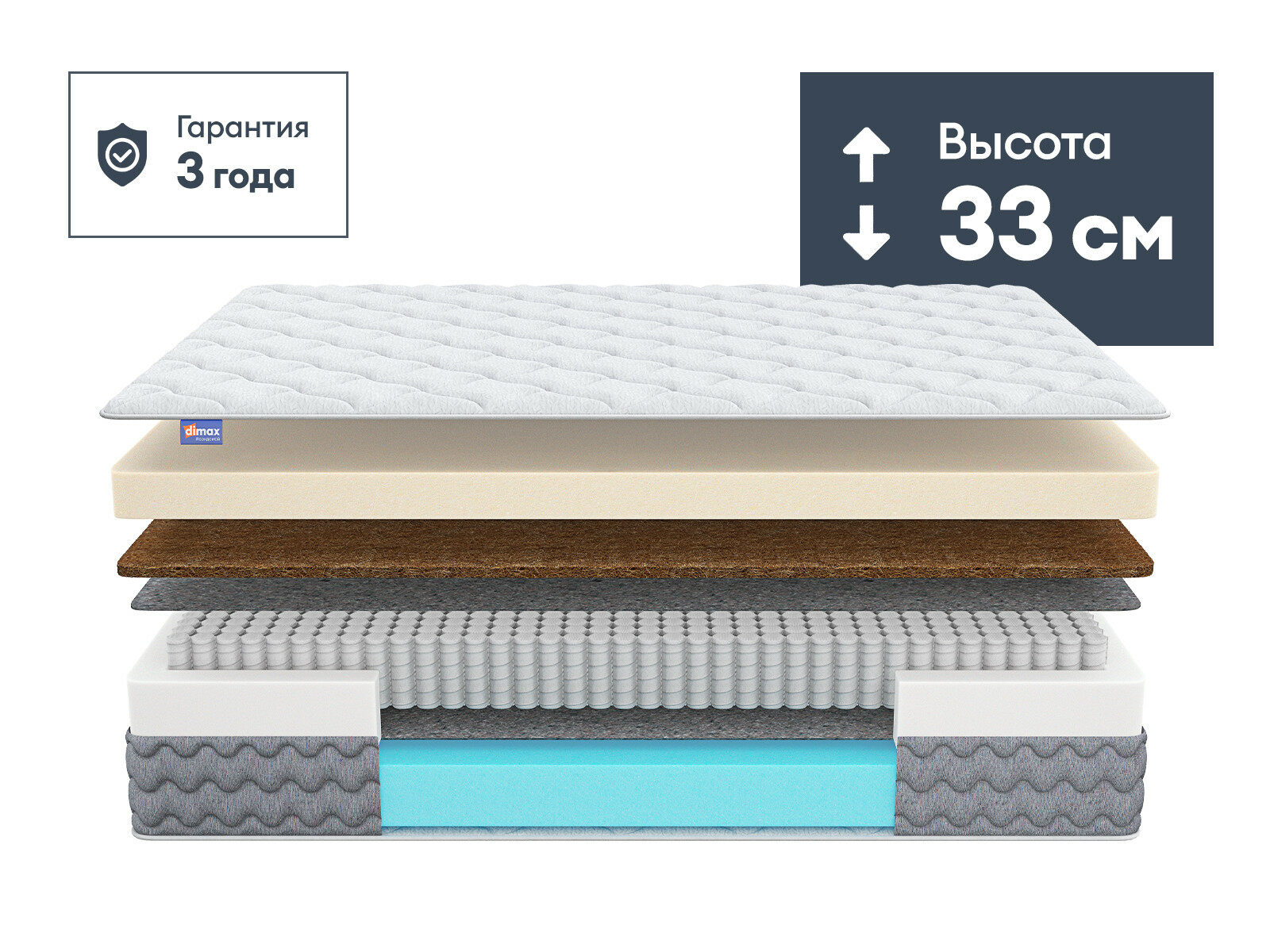 Матрас Димакс Биг Лайт Найт — это высокая пружинная модель с двумя сторонами комфорта. Классический средний уровень жёсткости и увеличенный пружинный блок дают надёжную поддержку и комфорт во время сна. Модель универсальна и подойдёт для удобного отдыха для разных типов фигур и телосложений.