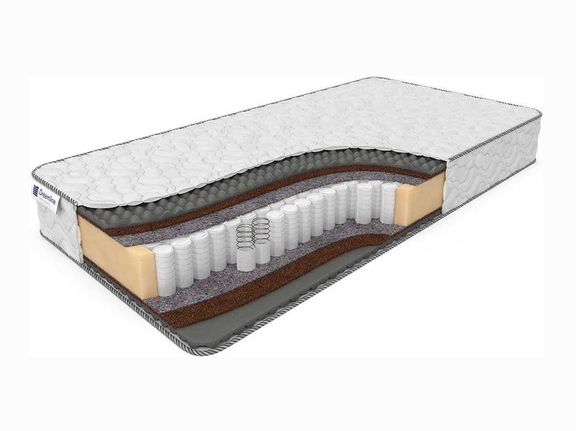 Сверху матрас обтянут объемным чехлом Dreamline Softech. Он сделан из качественного трикотажа, простеганного на антиаллергенном холлконе. Ткань хорошо дышит и имеет приятную на ощупь текстуру.