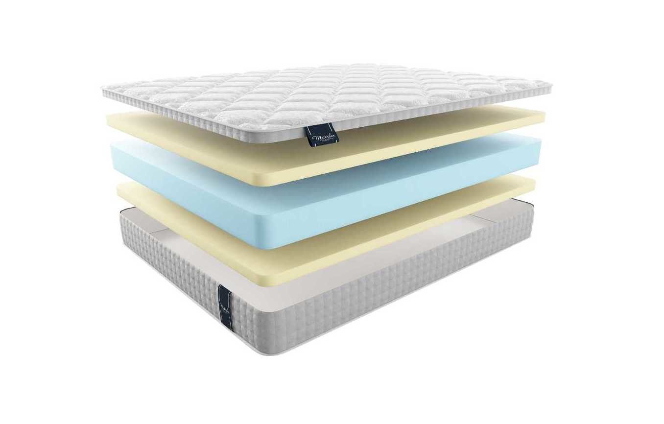 Если заглянуть под обивку матраса, то можно обнаружить, что он состоит из трёх слоёв. Самый толстый – это срединный блок пены Natural form. Сверху и снизу от него проложены более тонкие плиты Меморикса.