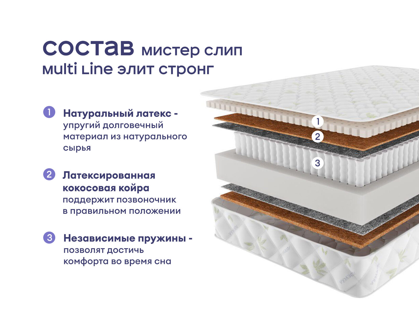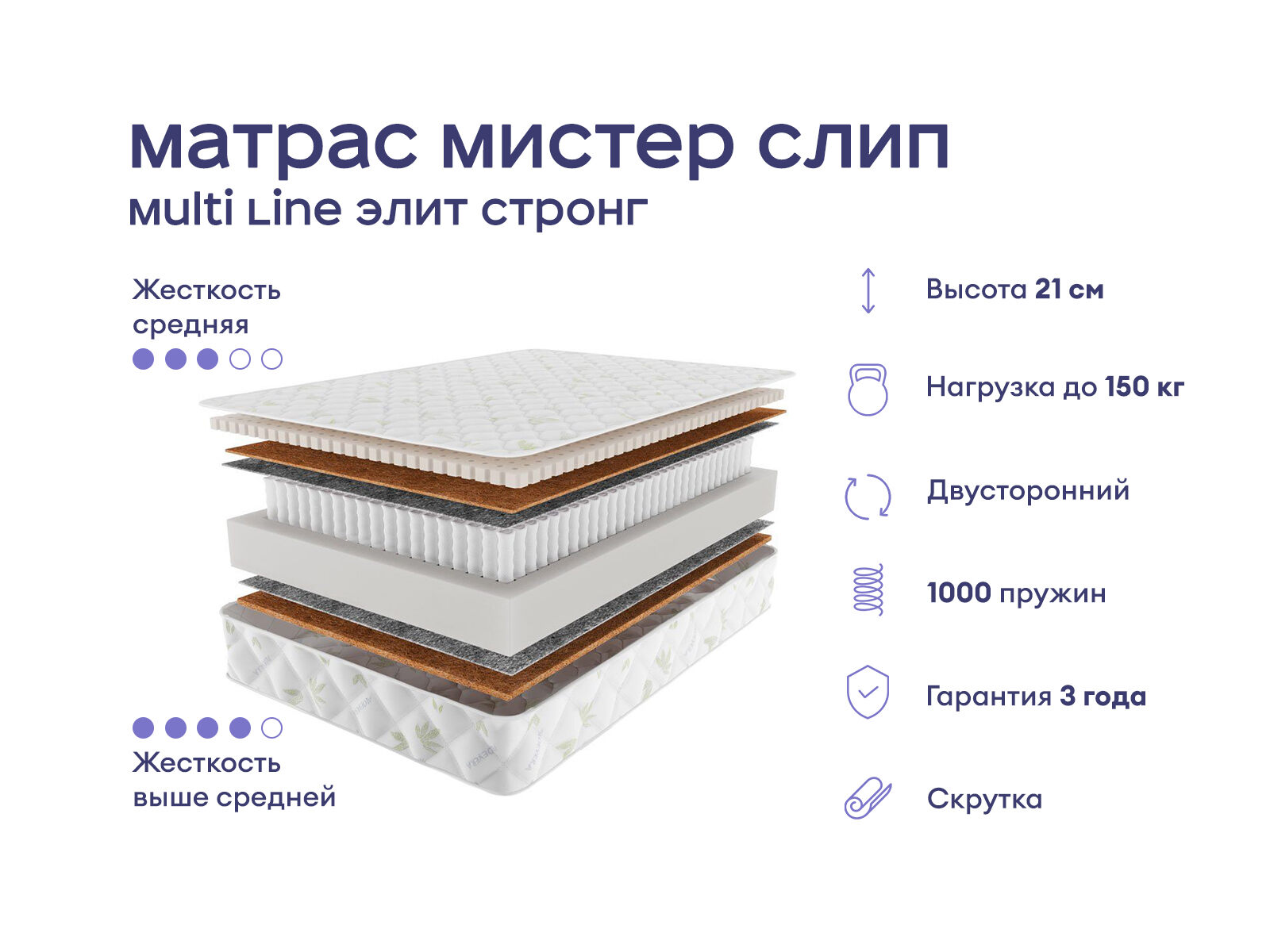 Комплект Амадора + Мистер Слип Multi Line Элит Стронг — это гармония элегантности и умных технологий для сна. Кровать с дизайнерским изголовьем и двусторонний матрас из натуральных материалов создают пространство, где каждая деталь заботится о вашем комфорте, здоровье и эстетике интерьера. Покупая комплект, вы выбираете готовое решение для восстановления сил с выгодой до 36%.