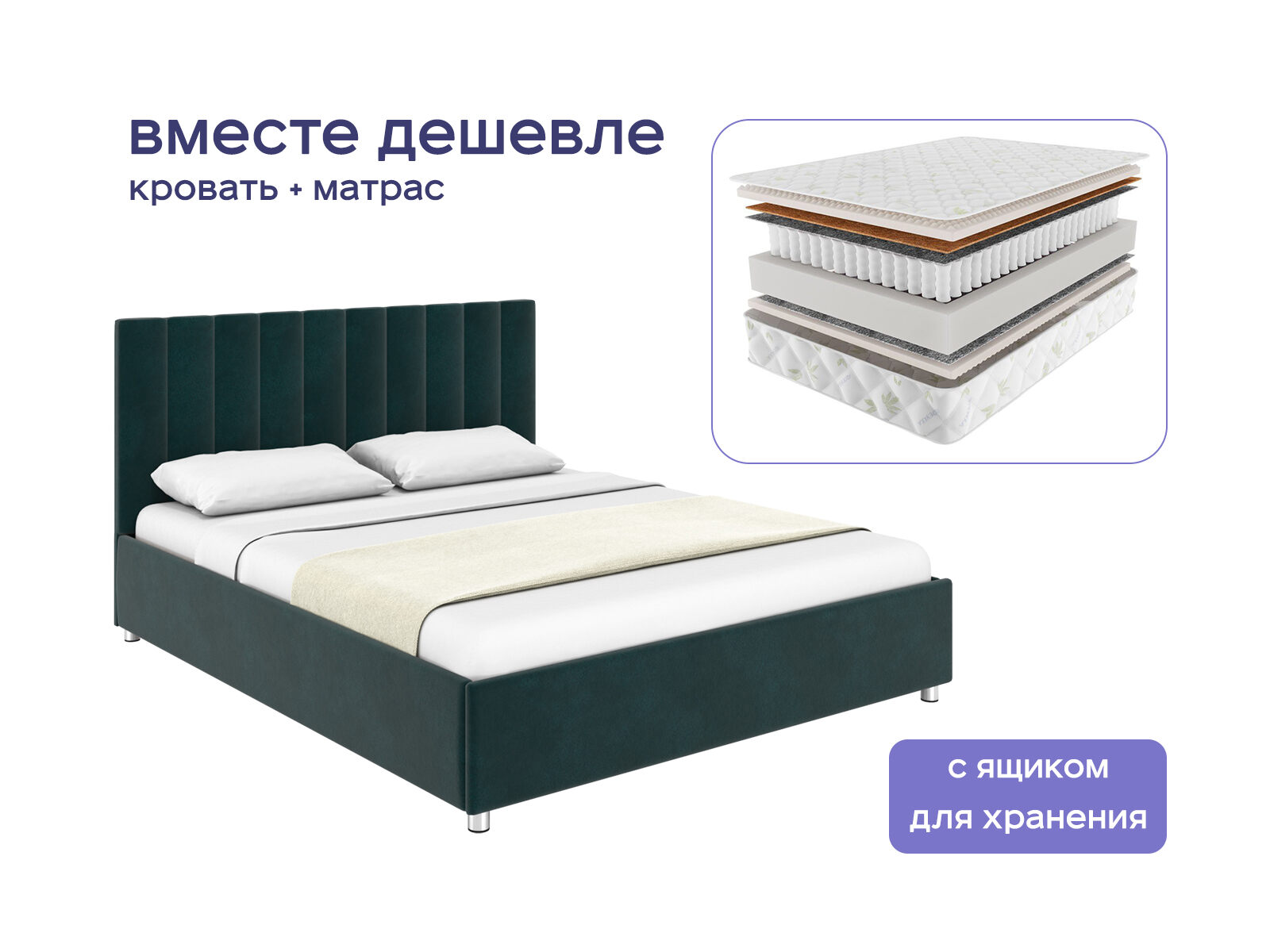 Модель отличается лаконичным изголовьем, которое украшает вертикальная параллельная стёжка. Стильная модель выделяется продуманным дизайном и украсит любой интерьер. Обивка кровати изготовлена из мягкого велюра. Мебельный короб производится из ДСП. В комплект входит ортопедическое металлическое разборное основание с подъемным механизмом.