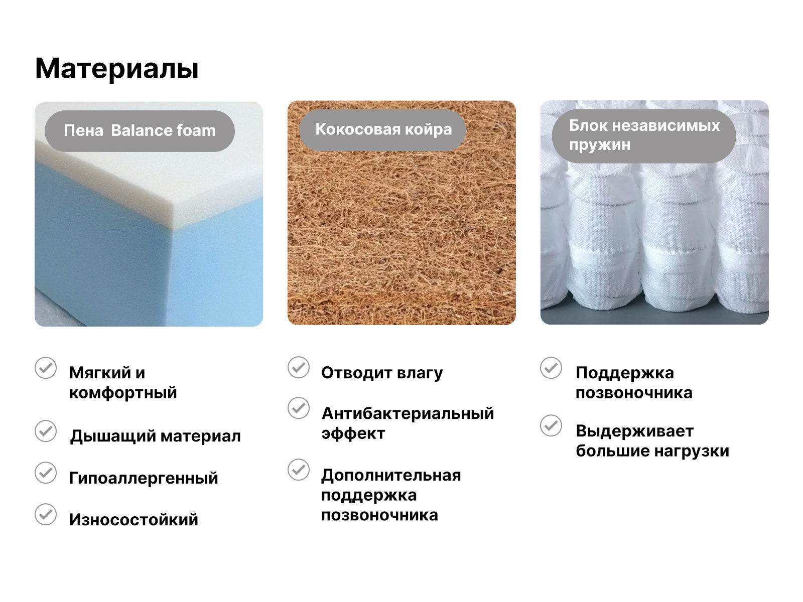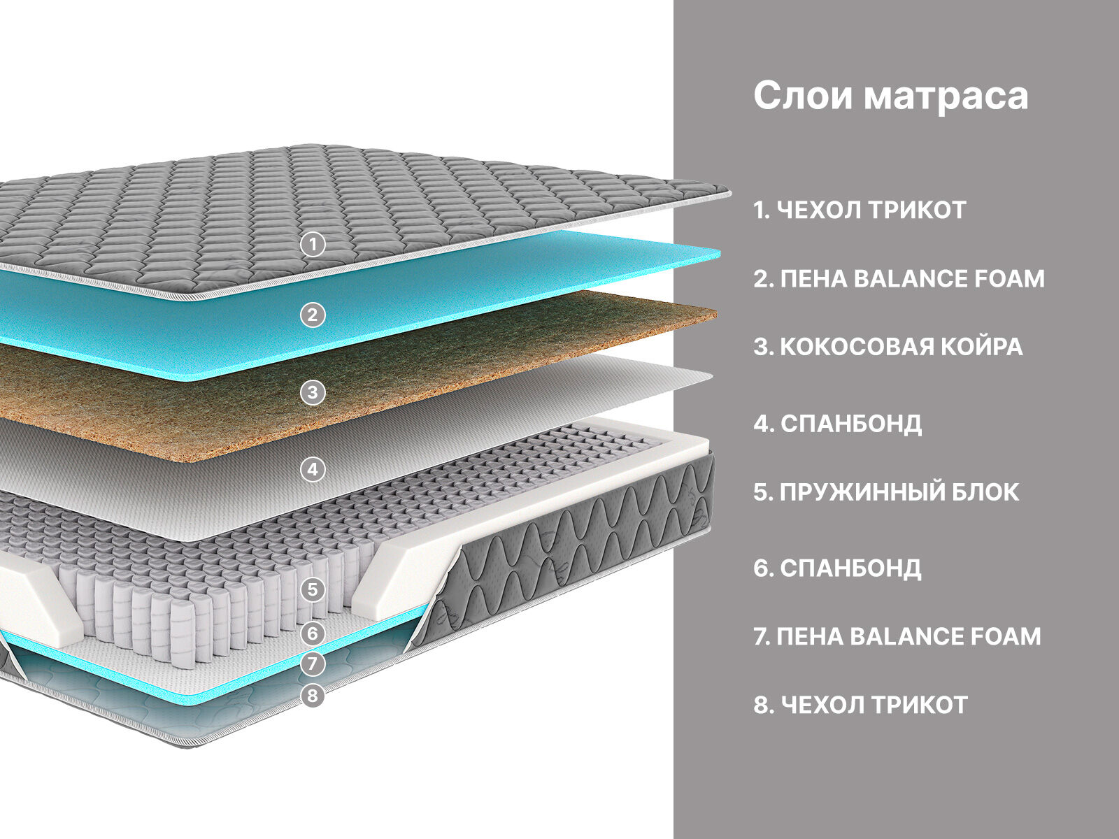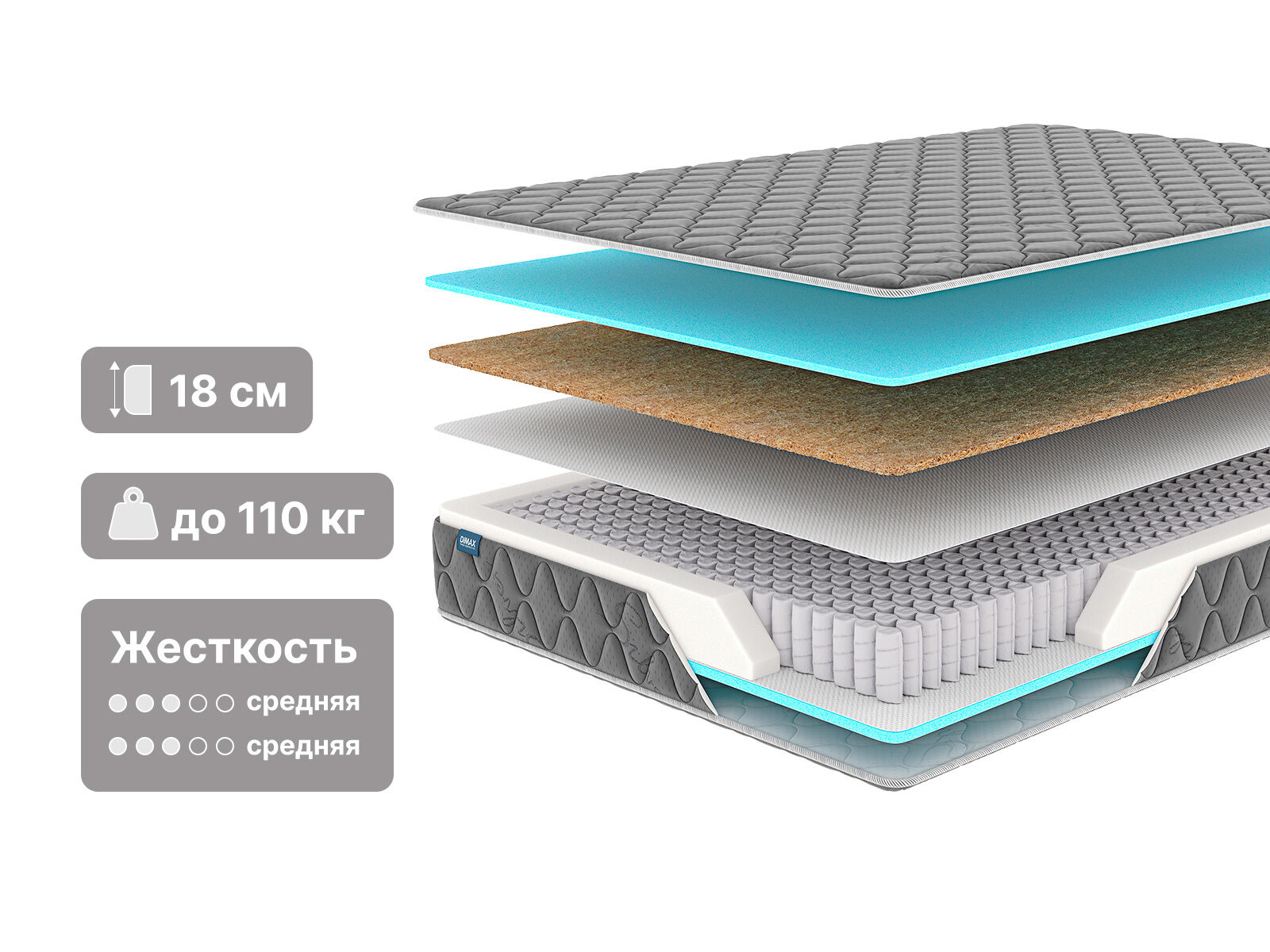 Слой натуральной койры кокоса позволяет лучше распределять нагрузку и усиливает эффект правильной поддержки позвоночника.