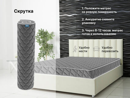 На матрас надет чехол из трикота – прочной износостойкой ткани, не боящейся частых трений. Чехол выполнен в графитовом оттенке – практичном немарком цвете, который универсально впишется в любой дизайн интерьера.