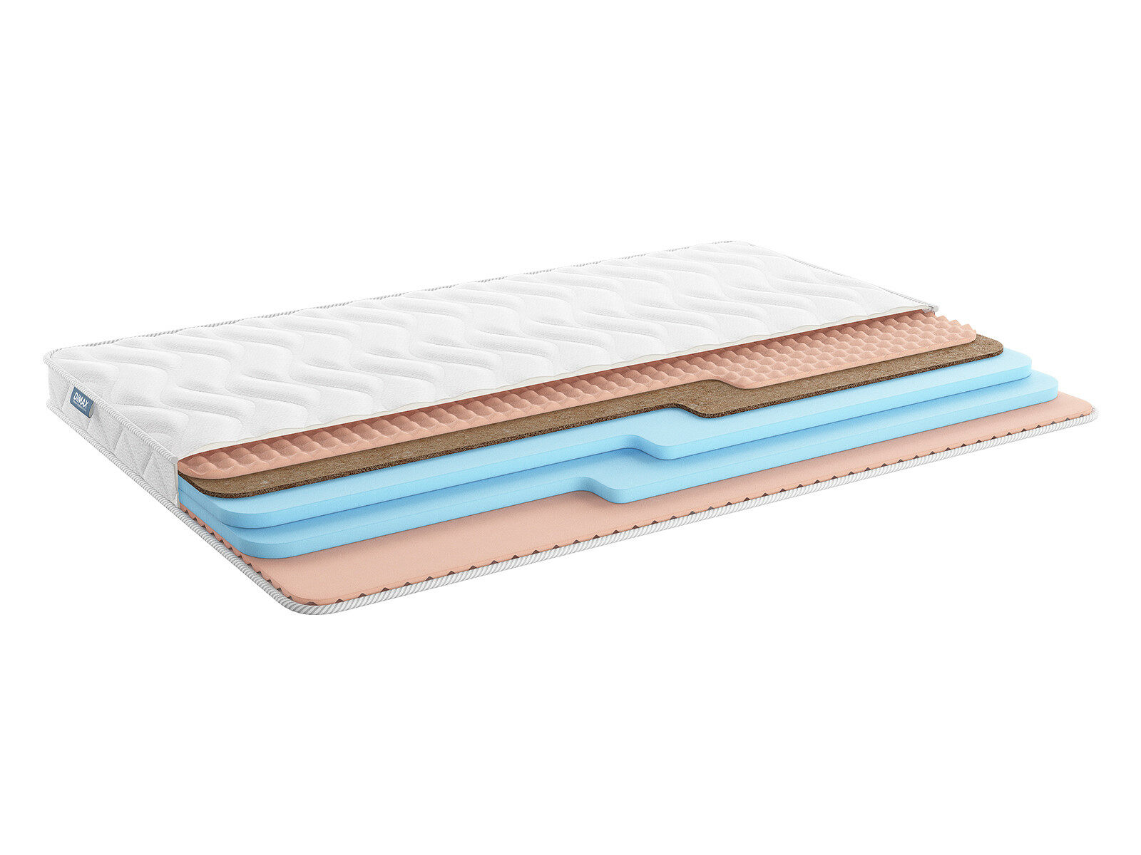 Невысокий беспружинный матрас Димакс Relmas Cocos Roll 9 сочетает массажный эффект с разной степенью жёсткости сторон. Компактный размер и ортопедические свойства делают его универсальным выбором для дома, дачи или временного проживания.