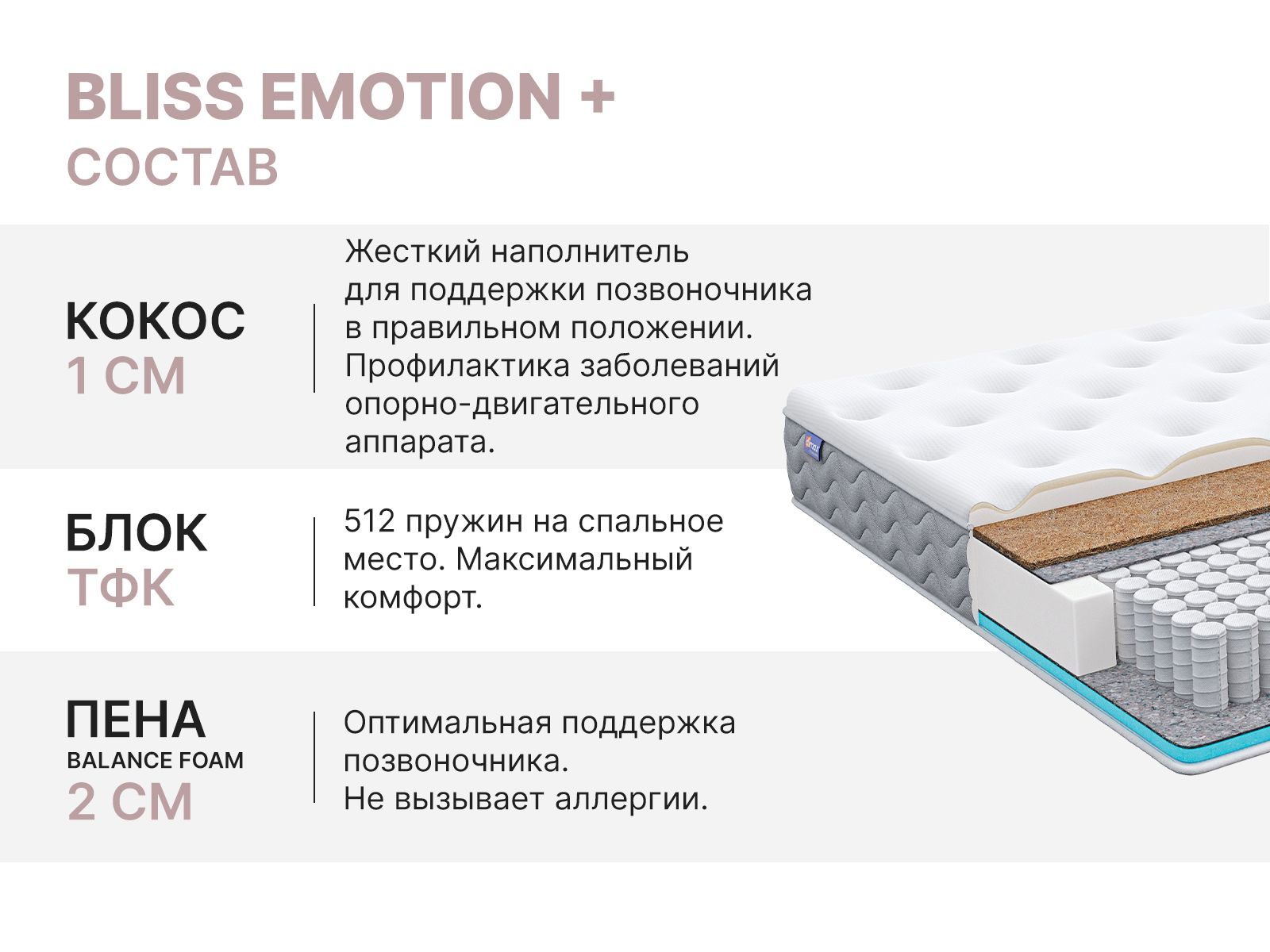 Матрас сочетает в себе комфорт и ортопедическую поддержку, обеспечивая идеальные условия для сна как для одного, так и для пары. Независимый блок пружин TFK гарантирует правильное положение позвоночника, а пышный чехол создаёт ощущение сна на облаке.