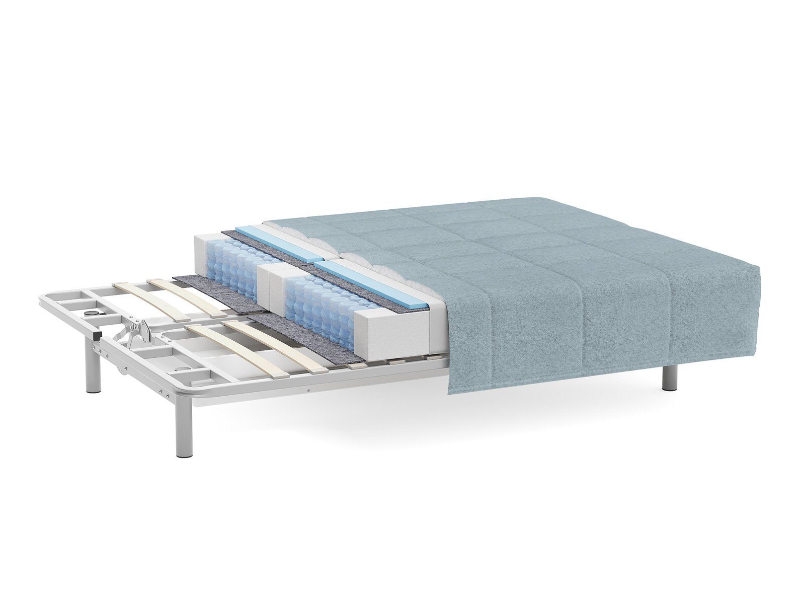 Диван Liberty box - подходит для полноценного сна. Основание для матраса – металлическая рама с деревянными ламелями. Анатомический матрас средней жесткости с независимым пружинным блоком и высокоэластичной пеной Foam обеспечивают возможность правильного положения и расслабления во сне. Высота матраса 20 см.
