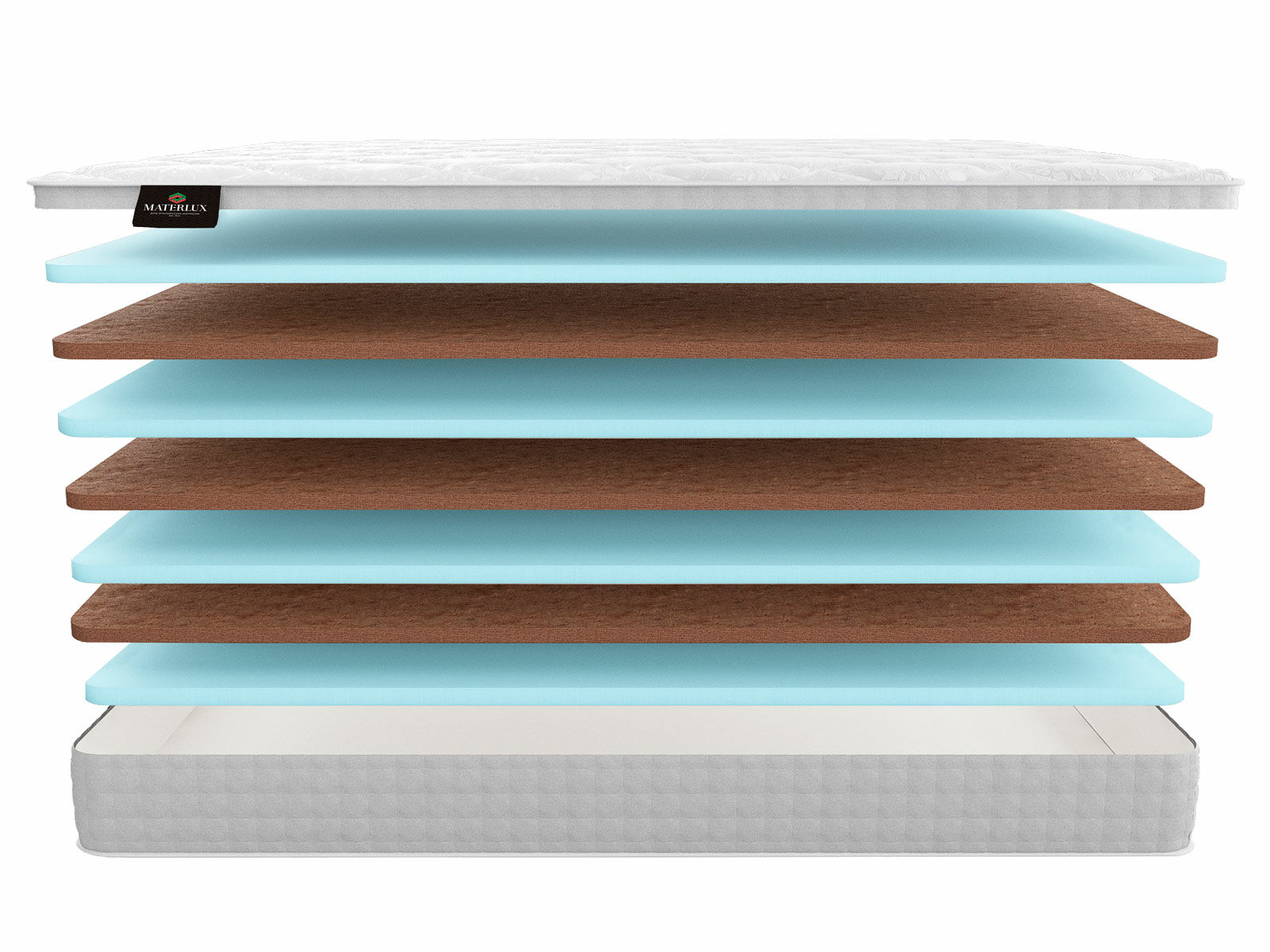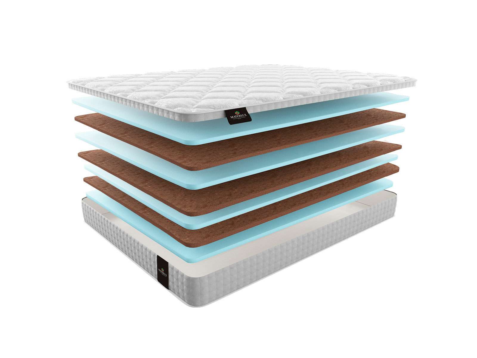 Жесткий беспружинный матрас из чередующихся слоев кокосовой койры и ортопедической пены.