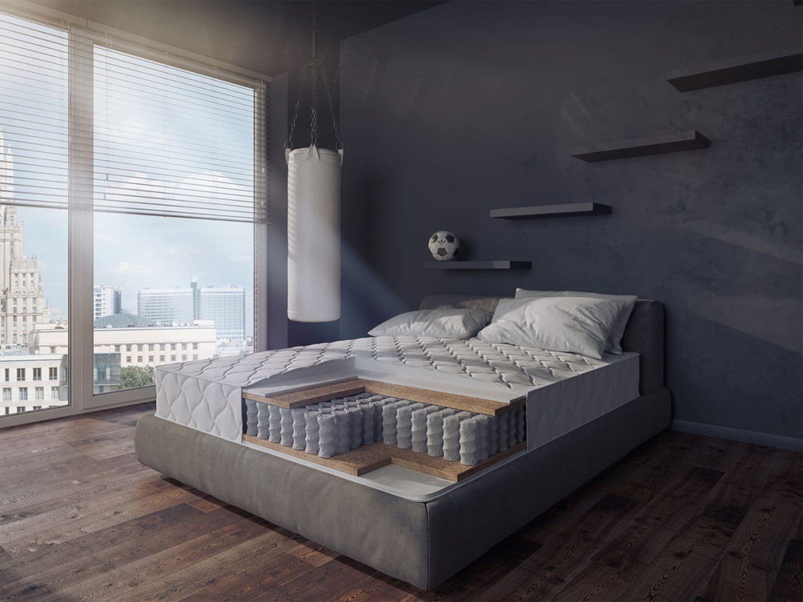 Ортопедический матрас выше средней жесткости Relax H4 с искусственным латексом, кокосом и блоком независимых пружин в основе.