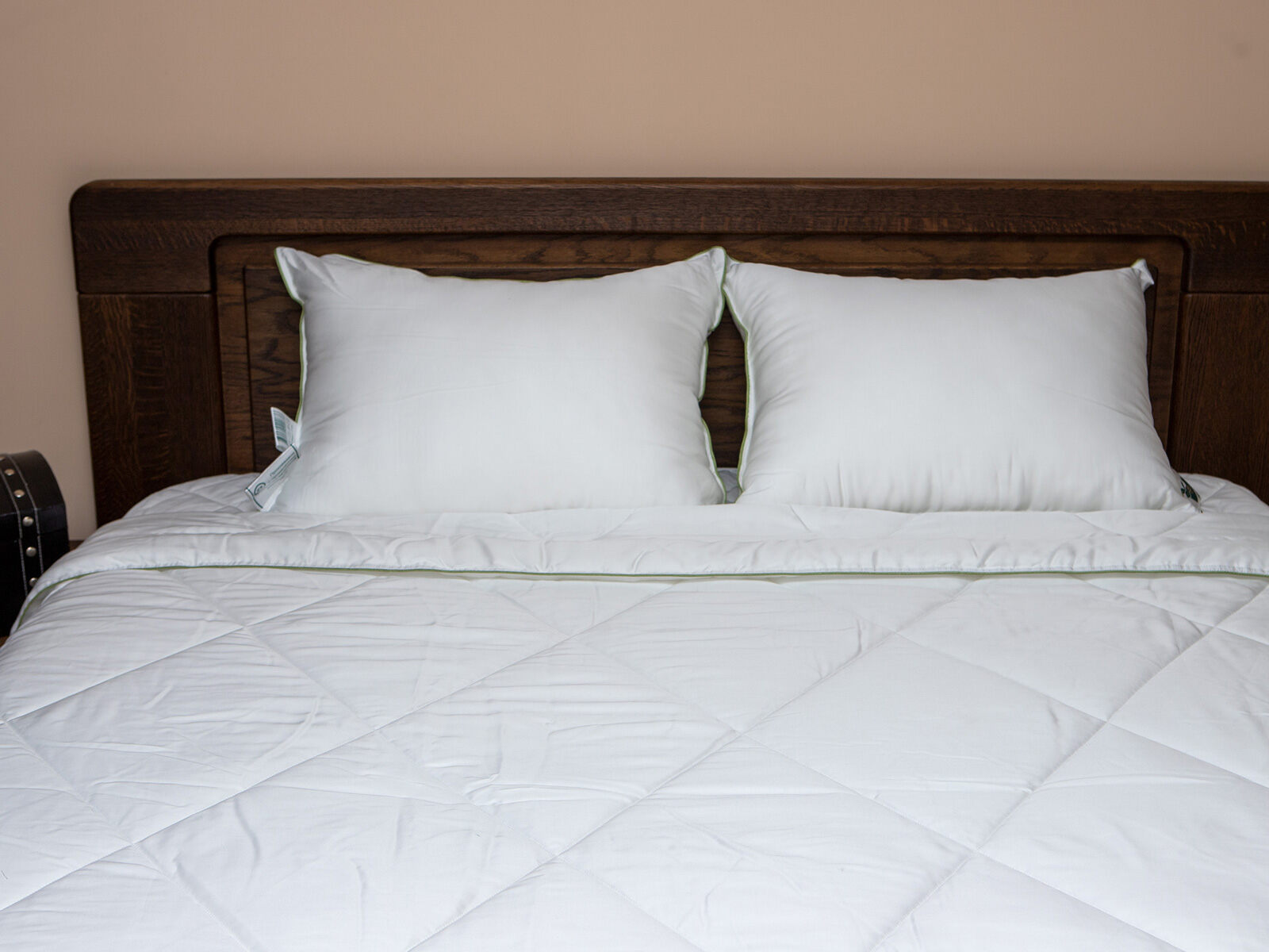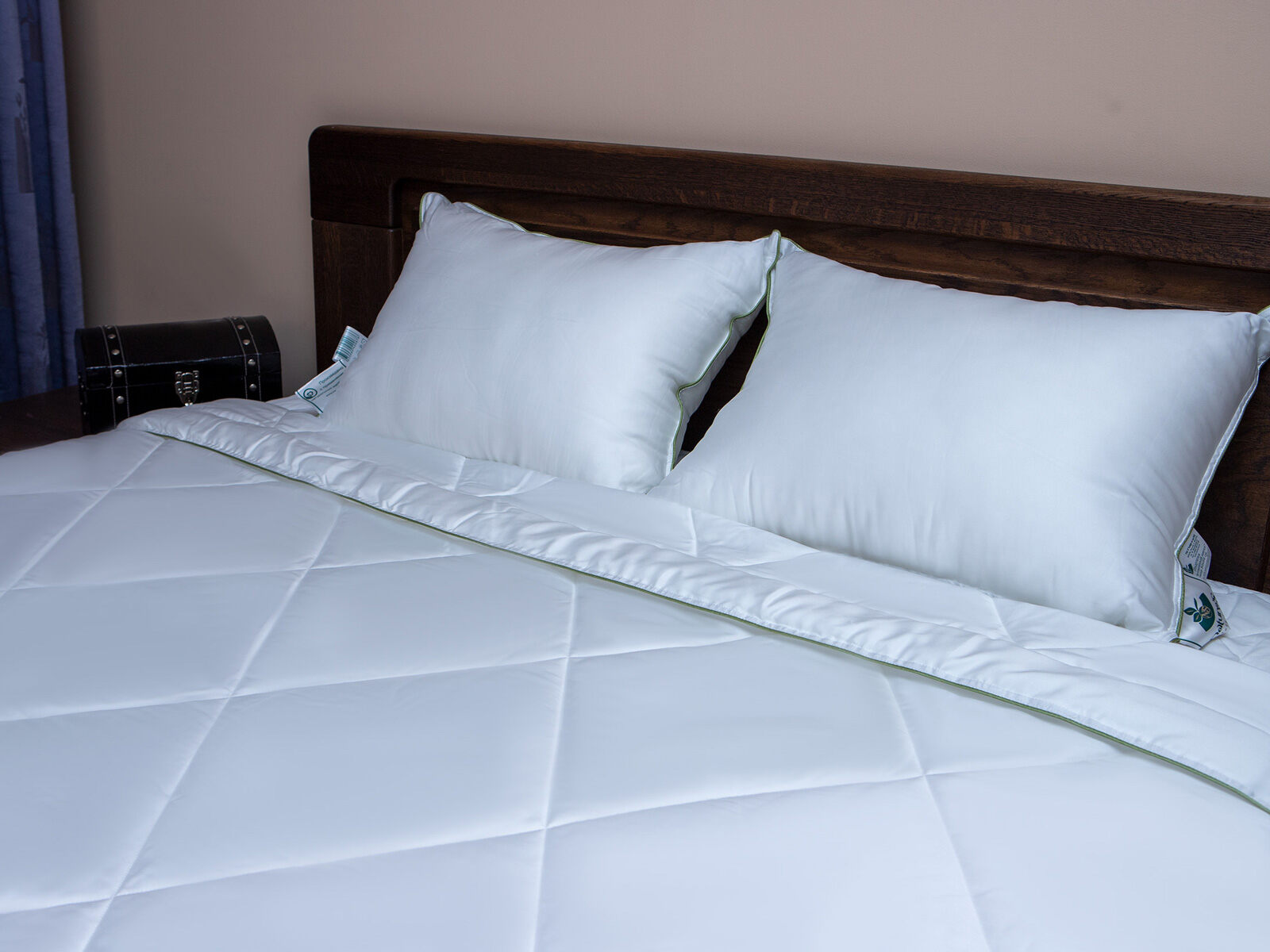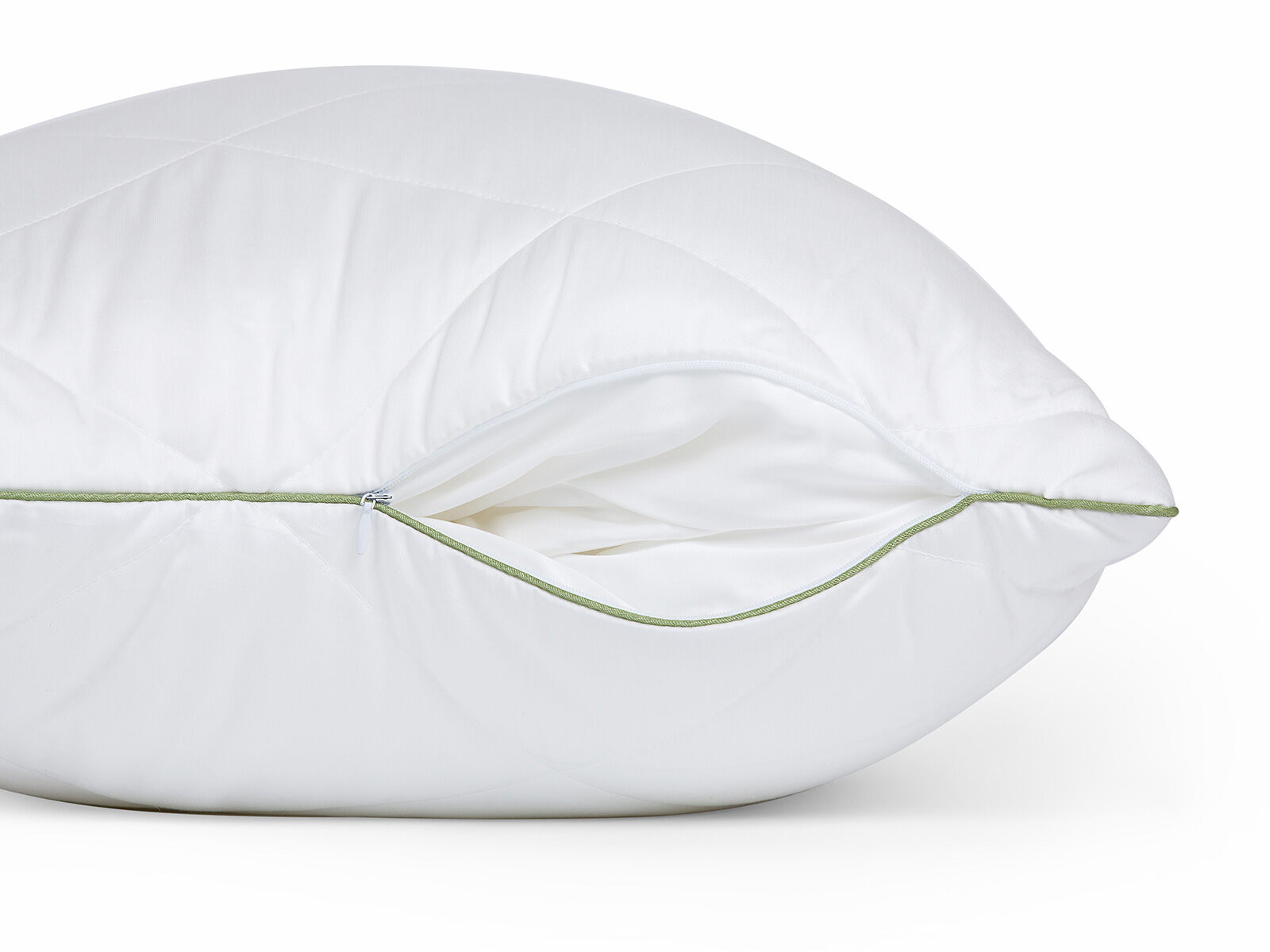 Ткань: 100% LYOCELL (лиоцелл — волокно эвкалиптового дерева) — шелковистая ткань, обладающая явным охлаждающим эффектом. Плотность: 282/186 нитей на 10 см²,121 г/м². Цвет сливочный. Чехол стеганый, наличие молнии для возможности самостоятельной регулировки наполнителя.