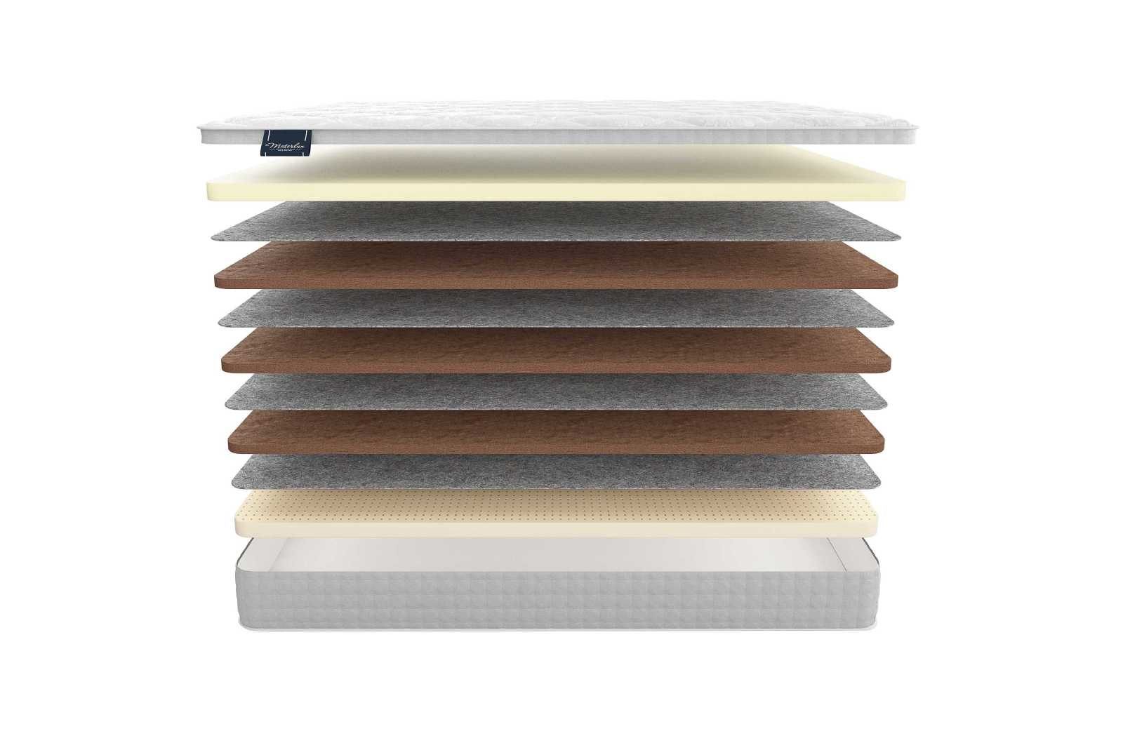 Так как верхние слои матраса обеспечены достаточно мягкими наполнителями, то их необходимо дополнить жёстким основанием для устойчивости. Именно такой базой выступает койра кокоса, представленная в самом центре модели. Плиты койры не только отвечают за сбалансированность, но и дают правильную ортопедическую поддержку спине человека.