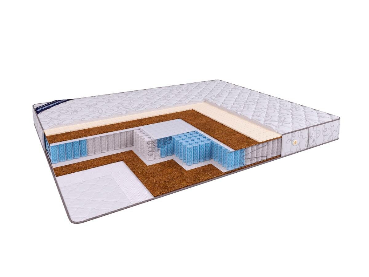 Матрас с разной жёсткостью сторон Hit Comfort S1200 выполнен на основе пружинного блока "Мультипакет" (1200 пружин на спальное место), обеспечивающего оптимальную анатомическую поддержку спящему человеку. Пять различных зон жёсткости в пружинном блоке матраса соответствуют различным зонам тела человека, обеспечивая равномерное распределение веса тела и нахождение позвоночника в естественном положении. Благодаря несимметричной конструкции матрас имеет разную жёсткость сторон: он более мягкий с "латексной" стороны и более жёсткий со стороны кокосовой койры. Различающаяся жёсткость сторон позволит Вам подобрать более комфортную сторону матраса самостоятельно.