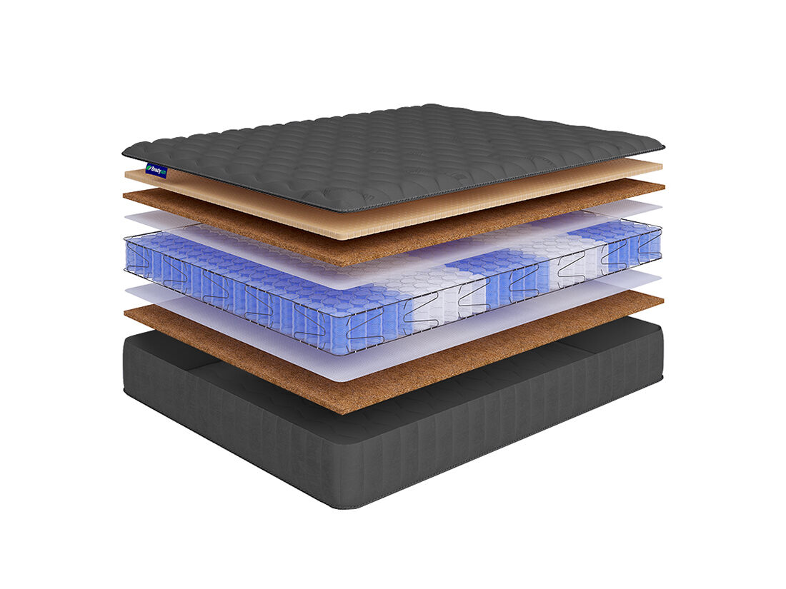 Матрас Hit VarioMed Lux TFK+ выполнен на основе независимого пружинного блока плотностью 600 пружин на спальное место, обеспечивающего оптимальную анатомическую поддержку спящему человеку. 5 зон жёсткости пружин в матрасе соответствуют каждой зоне тела человека, обеспечивая тем самым равномерное распределение веса тела и нахождение позвоночника в естественном положении. Одним из преимуществ данной модели матраса является разная жёсткость её сторон. Вы самостоятельно можете подобрать для себя наиболее комфортную сторону переворачиванием матраса: "кокосовая" сторона является более жёсткой, а обратная сторона с поверхностным слоем натурального латекса обеспечит более мягкую поверхность и комфорт.