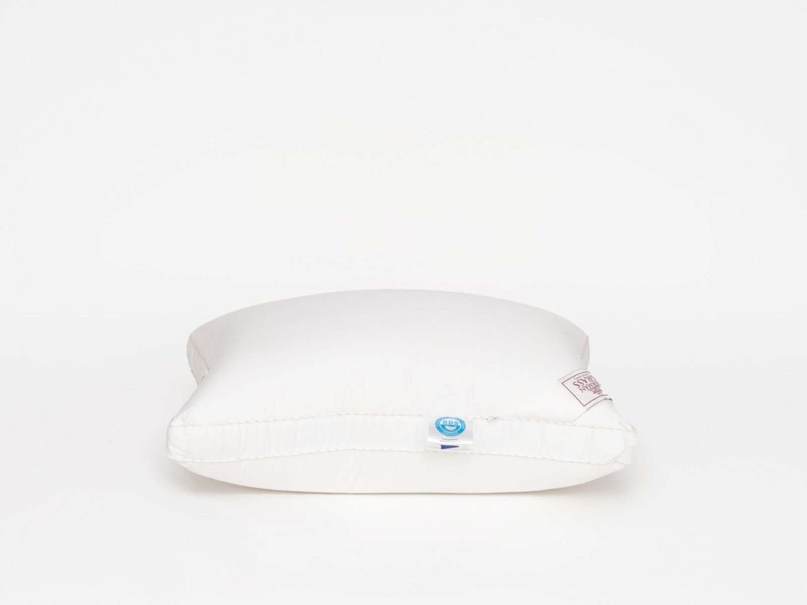 Немецкий хлопковый сатин высочайшей плотности соткан из тончайших нитей (Premium Satin – Nе 200/200 485 ТС) и прошел финишную обработку SanProCare® Sensitive, обеспечивающую усиленную гигроскопичность и придающую ей «пуховую мягкость». Особо тонкий, мягкий и «нешуршащий» чехол обладает повышенной износостойкостью и предотвращает проникновение пылевых клещей внутрь изделий. Наполнителем служит пух высочайшего качества, отобранный на гусиных фермах Сибири, которая, по утверждению биологов, является зоной проживания гусей, носящих пух максимально больших размеров, что, безусловно, влияет на пуховую массу положительно и наполнитель имеет повышенный коэффициент упругости (Fill Power), достигающий значений в 850 ед.