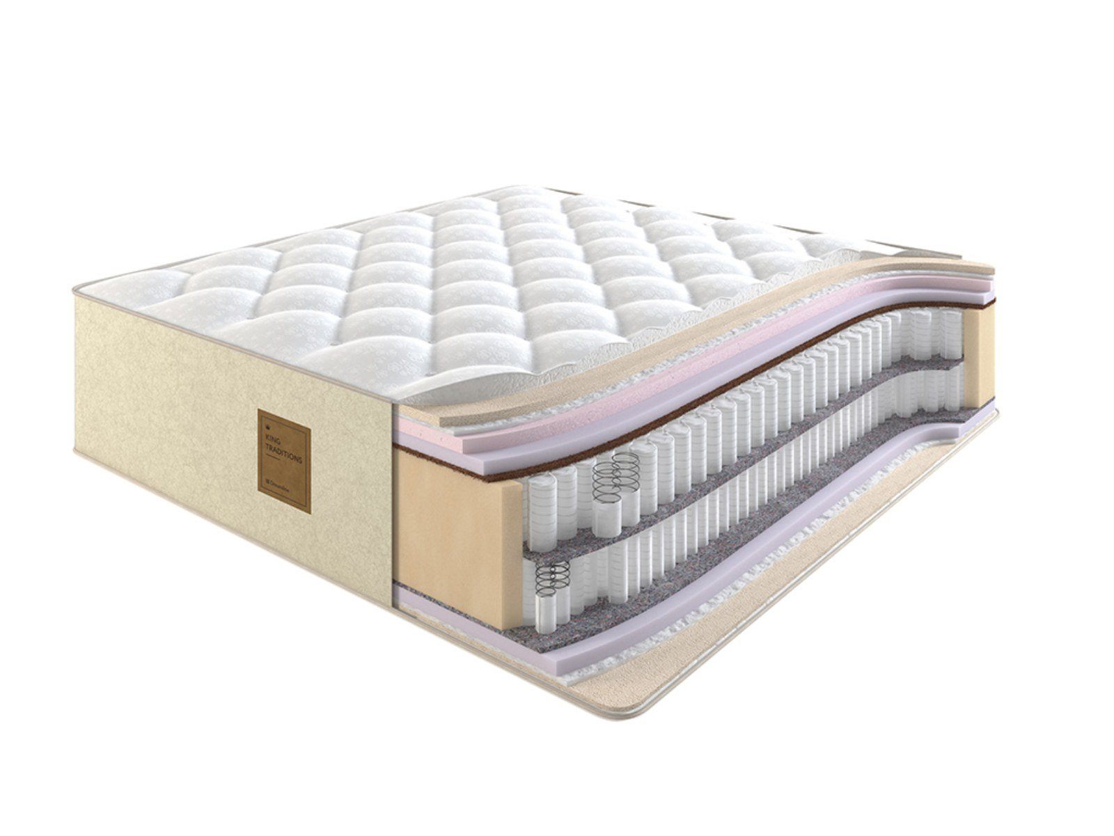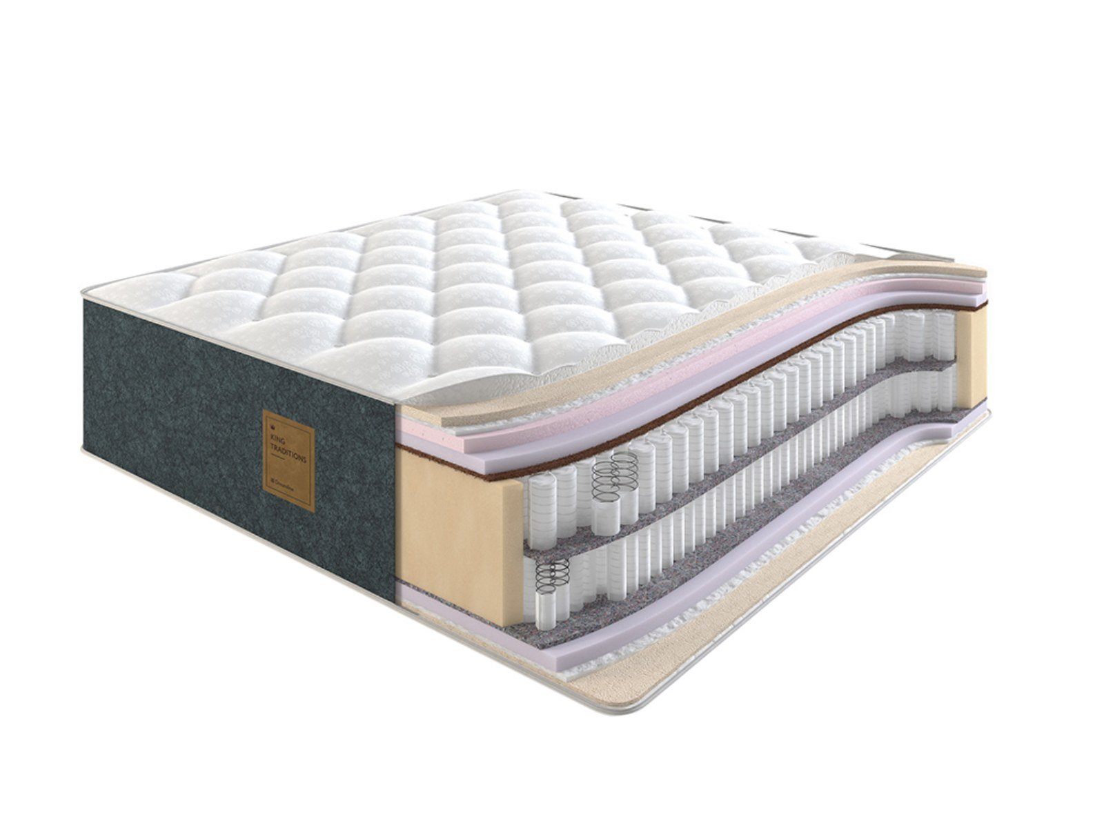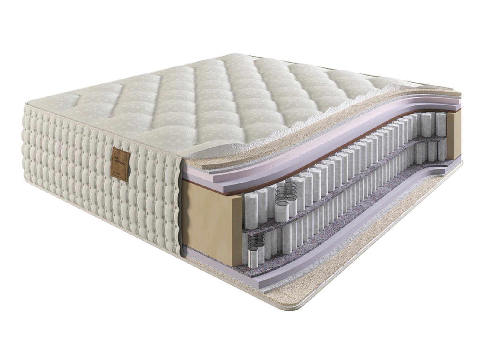 Коллекция King Traditions отличается невероятным качеством и роскошными материалами. В составе используются как современные, так и традиционные наполнители: натуральный латекс, конский волос, шерсть, холкон и эластичный материал.