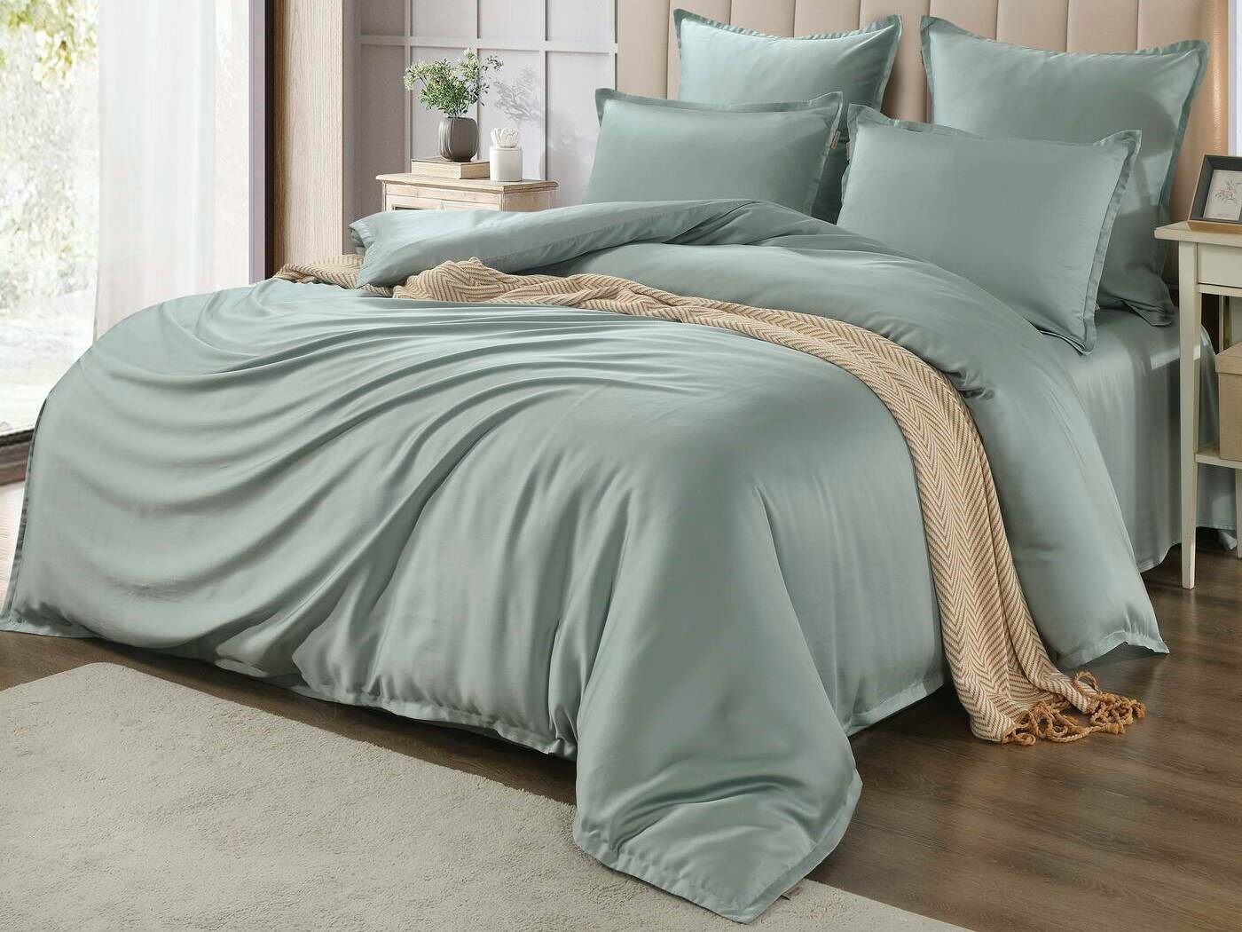 Комплекты постельного белья Ансель: нежность и комфорт каждую ночь Ищете постельное бельё, которое подарит вам незабываемый комфорт и уют? Тогда комплекты постельного белья Ансель из тенселя — идеальный выбор! Тенсель — это натуральная ткань, изготовленная из волокон эвкалипта. Она обладает рядом преимуществ перед хлопковыми тканями: более нежная, шелковистая и приятная на ощупь. Комплекты постельного белья Ансель включают в себя наволочки, простыню и пододеяльник. Они выполнены из 100% тенселя, что гарантирует высокое качество и долговечность. Одно из главных преимуществ тенселя — его способность пропускать воздух и хорошо впитывать и испарять влагу. Это обеспечивает оптимальный микроклимат во время сна, предотвращает появление неприятных запахов и бактерий. Ещё одно важное свойство тенселя — антибактериальный эффект. Это значит, что постельное бельё Ансель не вызывает аллергии и подходит для людей с чувствительной кожей. Уникальное свойство тенселя — климат-контроль. При высокой температуре в помещении ткань обладает лёгким и приятным охлаждающим эффектом, а при низкой создаёт ощущение тепла и комфорта. Комплекты постельного белья Ансель — это идеальный выбор для тех, кто ценит комфорт, качество и натуральность. Они станут отличным дополнением к вашему интерьеру и подарят вам незабываемые ощущения во время сна.