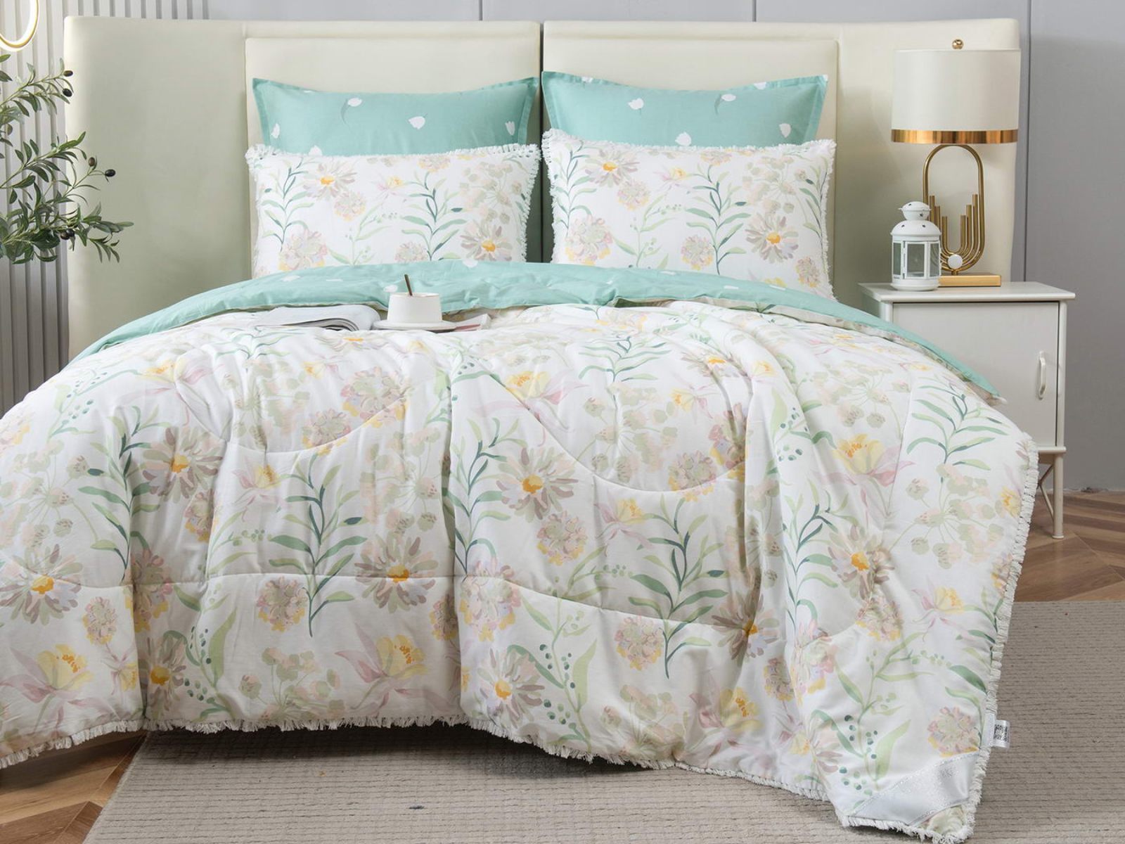 В комплекты комфортеров с одеялом Бернадетт входят наволочки, простыня и легкое всесезонное одеяло. Оцените это современное и очень удобное решение, которое идеально подходит тем, кто не любит возиться с пододеяльниками.