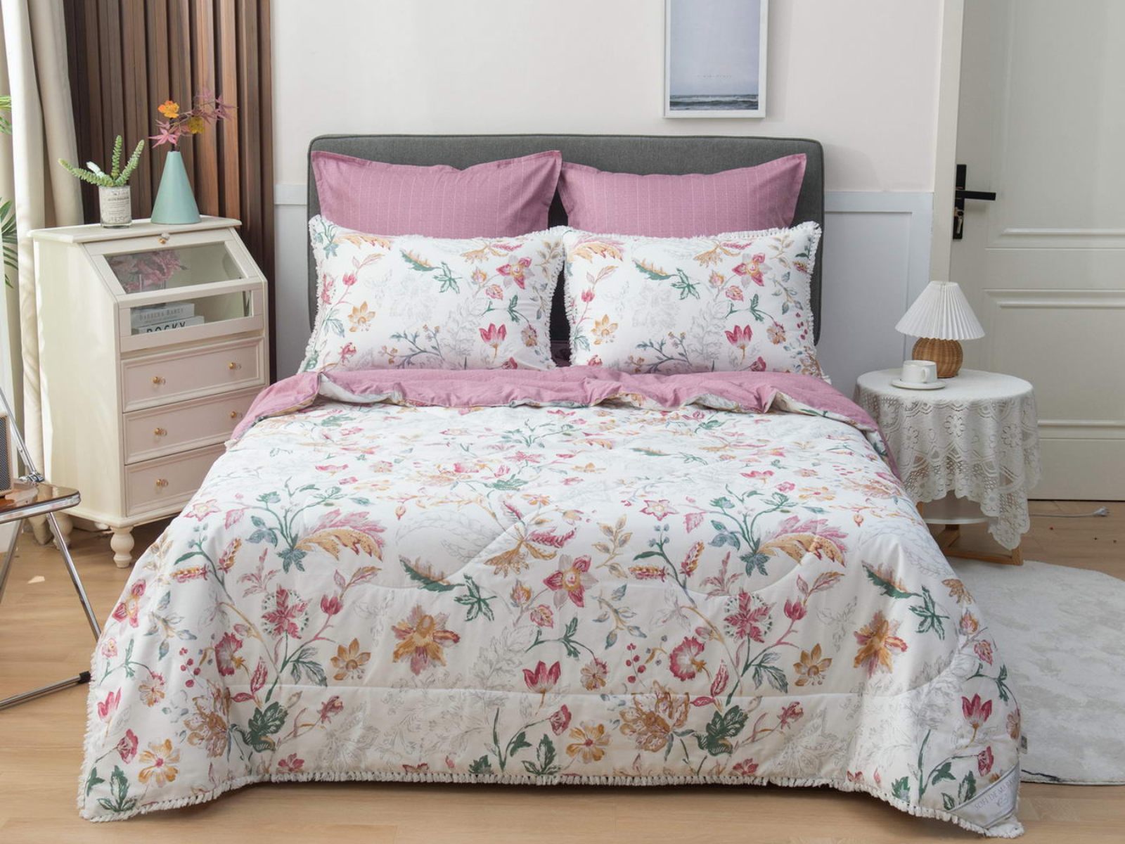 В комплекты комфортеров с одеялом Бернадетт входят наволочки, простыня и легкое всесезонное одеяло. Оцените это современное и очень удобное решение, которое идеально подходит тем, кто не любит возиться с пододеяльниками.