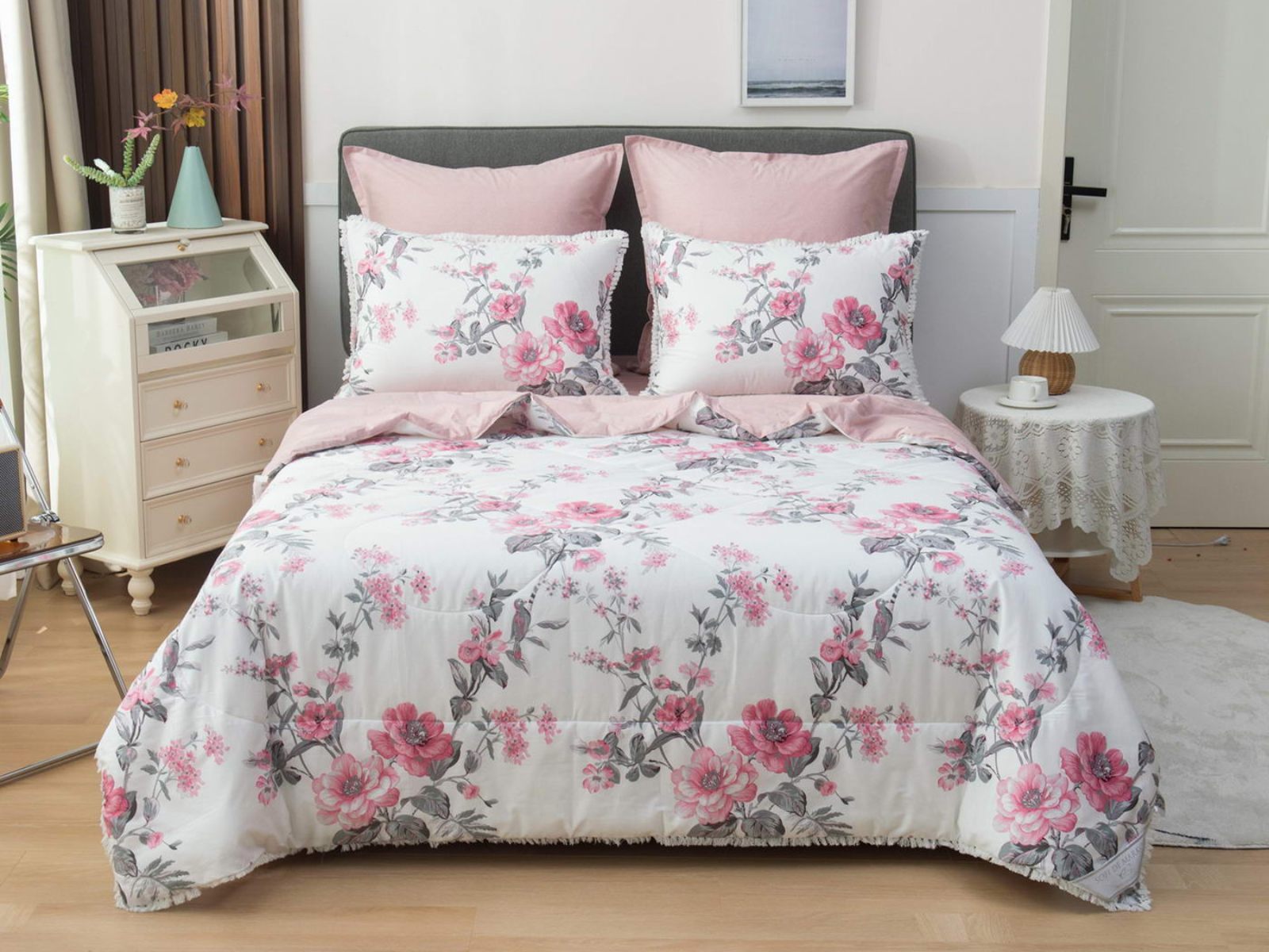 В комплекты комфортеров с одеялом Бернадетт входят наволочки, простыня и легкое всесезонное одеяло. Оцените это современное и очень удобное решение, которое идеально подходит тем, кто не любит возиться с пододеяльниками.
