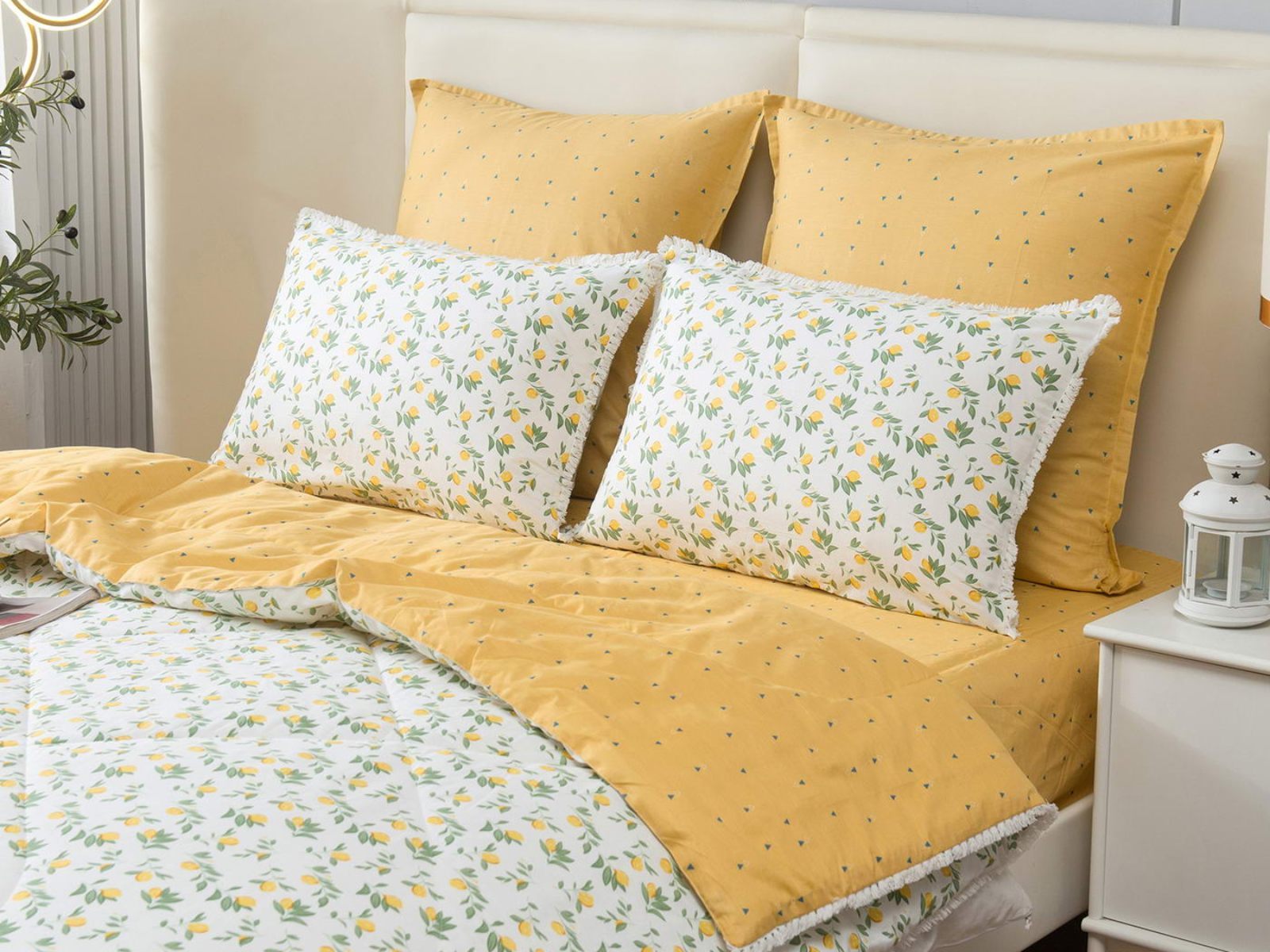 В комплекты комфортеров с одеялом Бернадетт входят наволочки, простыня и легкое всесезонное одеяло. Оцените это современное и очень удобное решение, которое идеально подходит тем, кто не любит возиться с пододеяльниками.