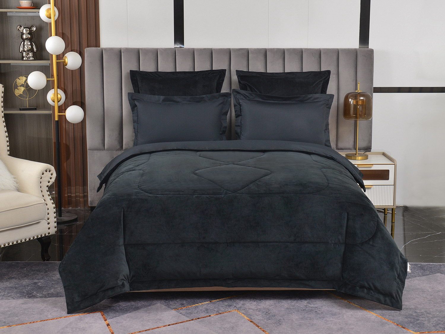 Изготовленный из качественной вискозы и мягкого хлопка трендовых цветов, комплект создаёт приятное ощущение на коже. Его экологичное наполнение из 100% эковолокна обеспечивает гипоаллергенные свойства, подарив вам спокойные и уютные ночи.