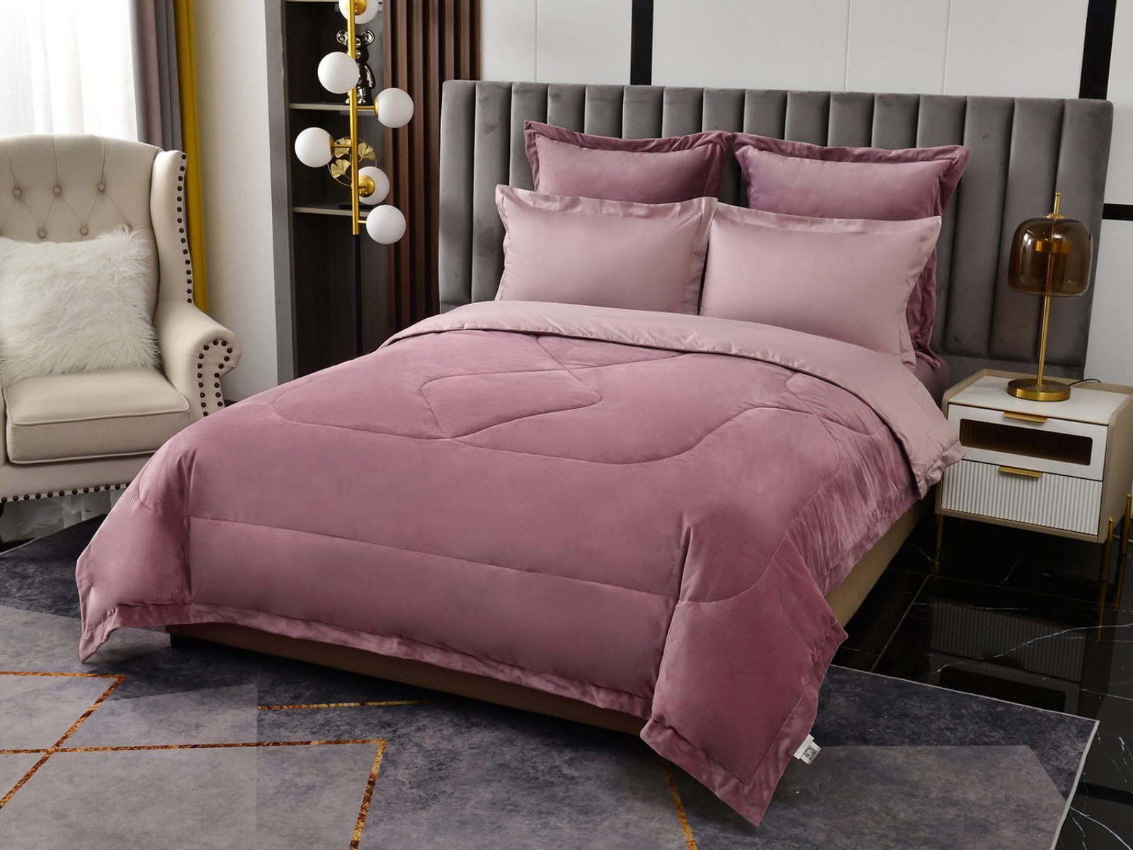 Изготовленный из качественной вискозы и мягкого хлопка трендовых цветов, комплект создаёт приятное ощущение на коже. Его экологичное наполнение из 100% эковолокна обеспечивает гипоаллергенные свойства, подарив вам спокойные и уютные ночи.