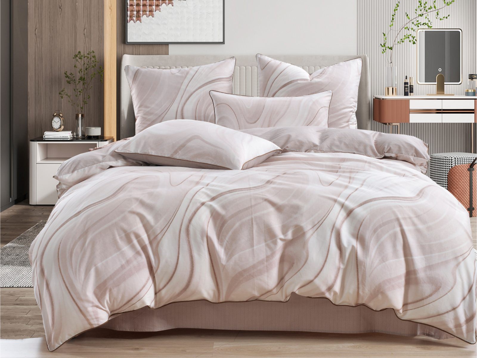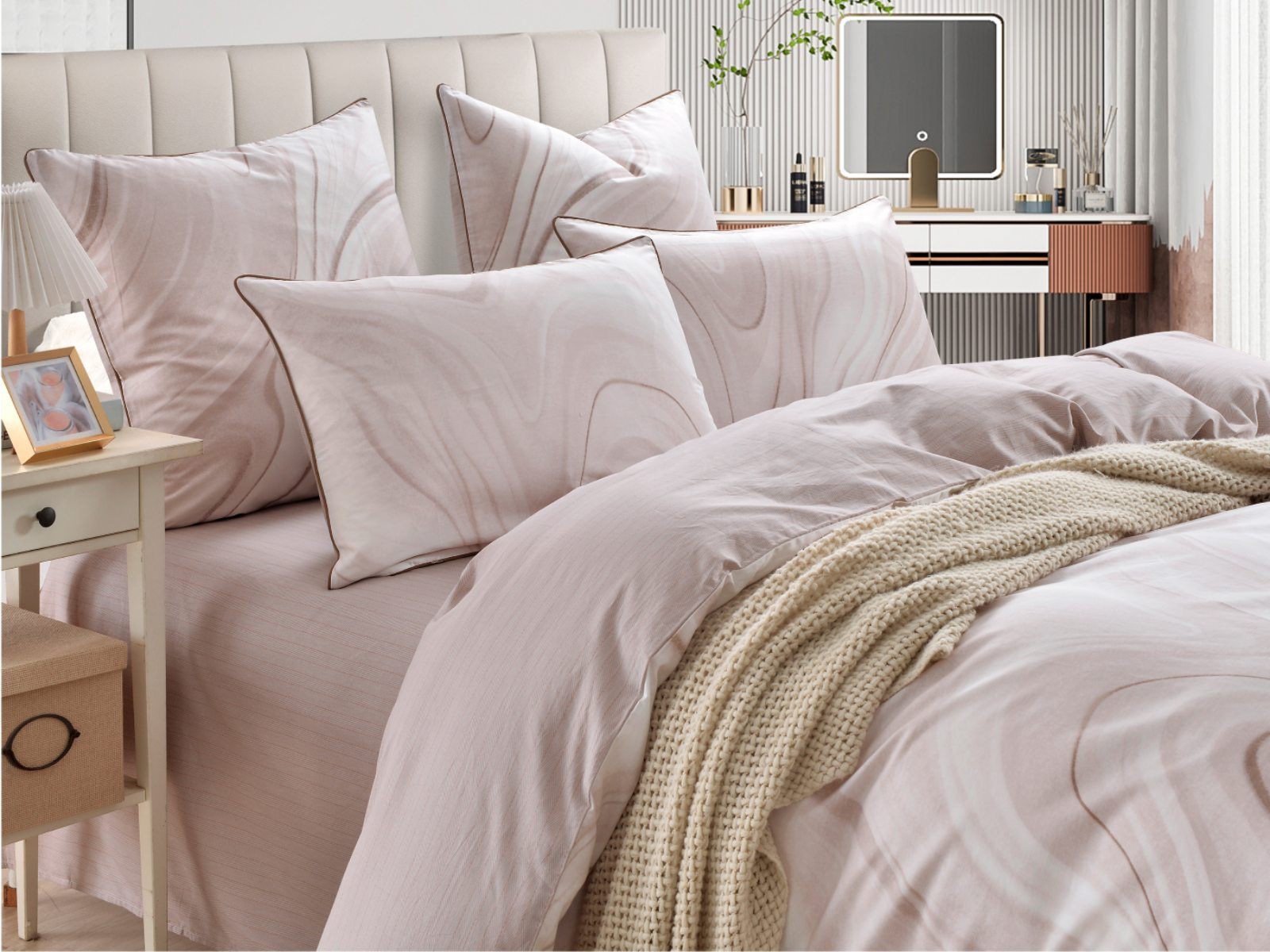 Лорайн (бежевый) — идеальный выбор для тех, кто одинаково ценит комфорт, эстетику и практичность. В составе — Хлопок 100%, поэтому у постельного белья исключительная износостойкость. Даже после многочисленных стирок оно сохранит первозданный цвет, прочность, мягкость и гладкую фактуру. Благодаря отличной воздухопроницаемости материал обеспечивает прохладу летом, а зимой согревает, плюс дарит приятные тактильные ощущения и здоровый сон. Сатин — еще и удивительно красивая ткань, КПБ из нее украсит интерьер спальни, сделает ее по-настоящему уютным местом для полноценного отдыха. К тому же у дизайнеров этот материал всегда в тренде, поэтому с такой покупкой вы точно не прогадаете.