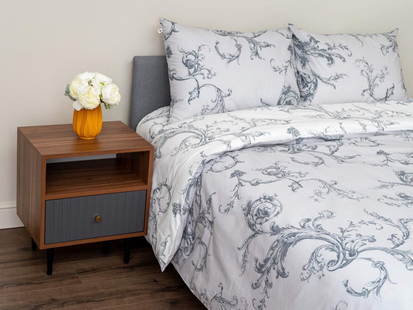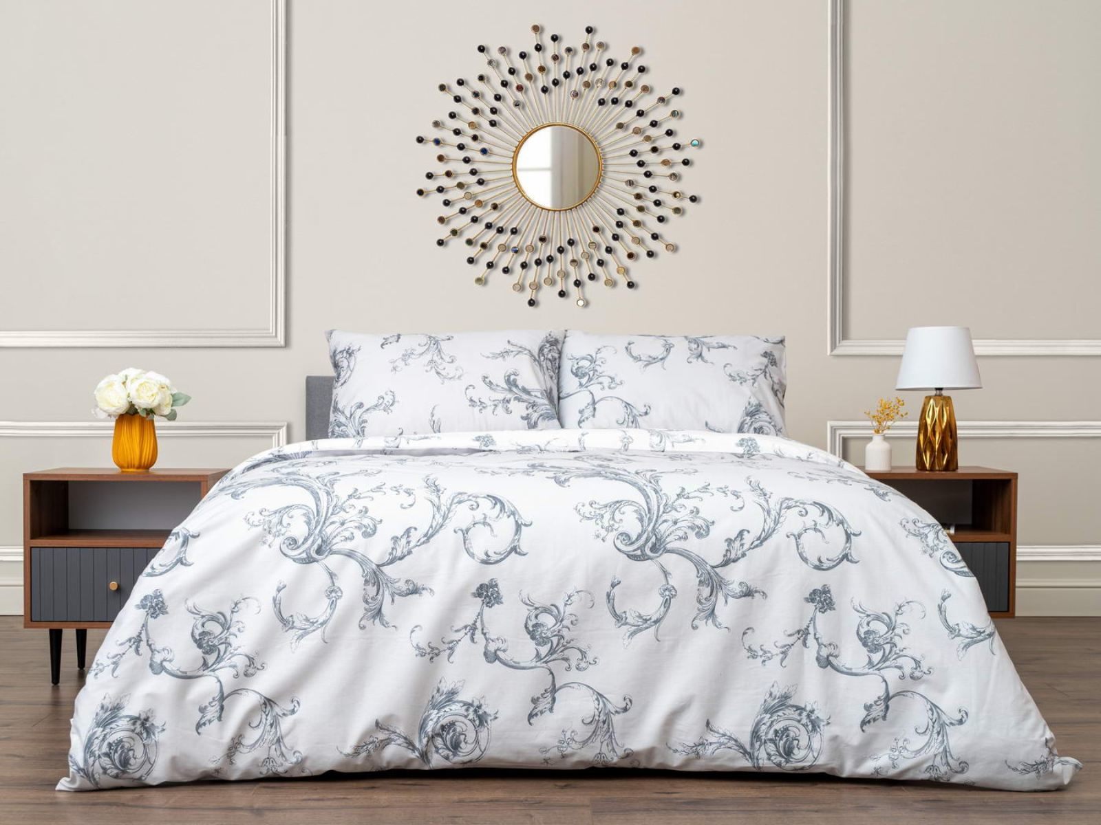 Комплект Мэгги легко стирается в обычной машине в бережном режиме и также легко гладится.