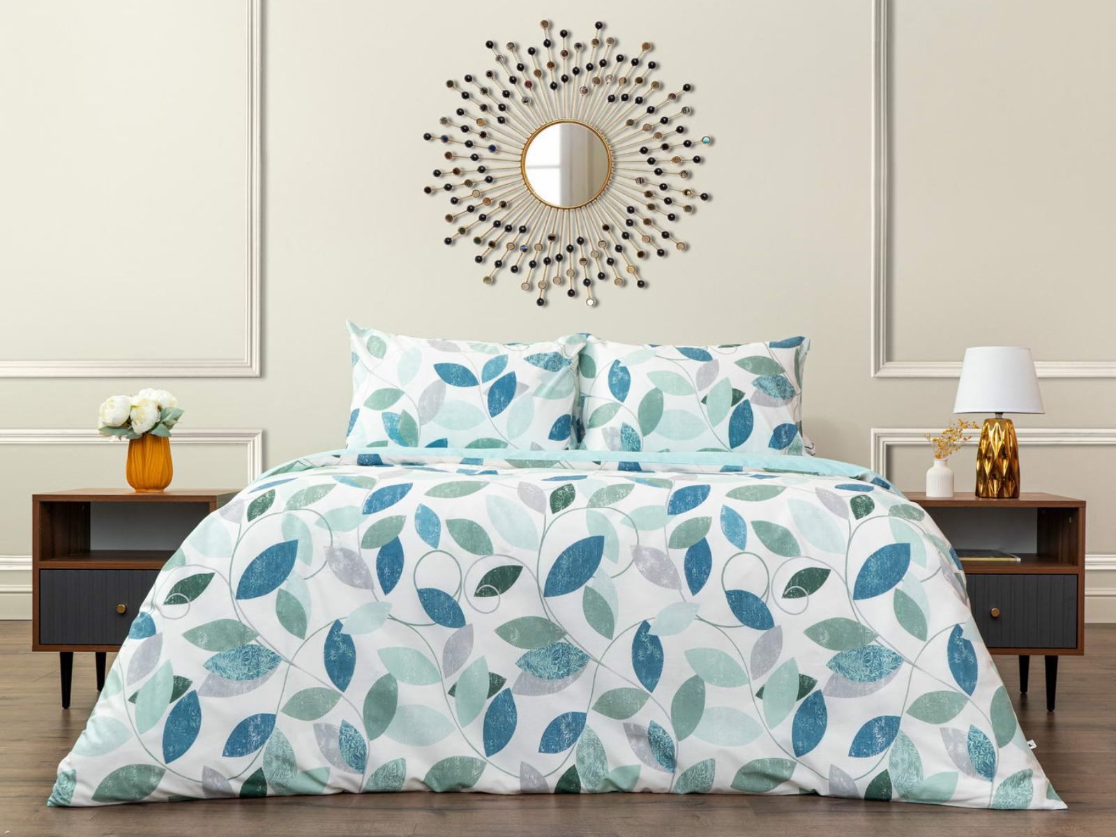 Комплект изготовлен из ранфорса, такая ткань отвечает всем современным стандартам и по уровню комфорта не уступает сатину. Ранфорс долговечен, лёгок и приятен на ощупь.