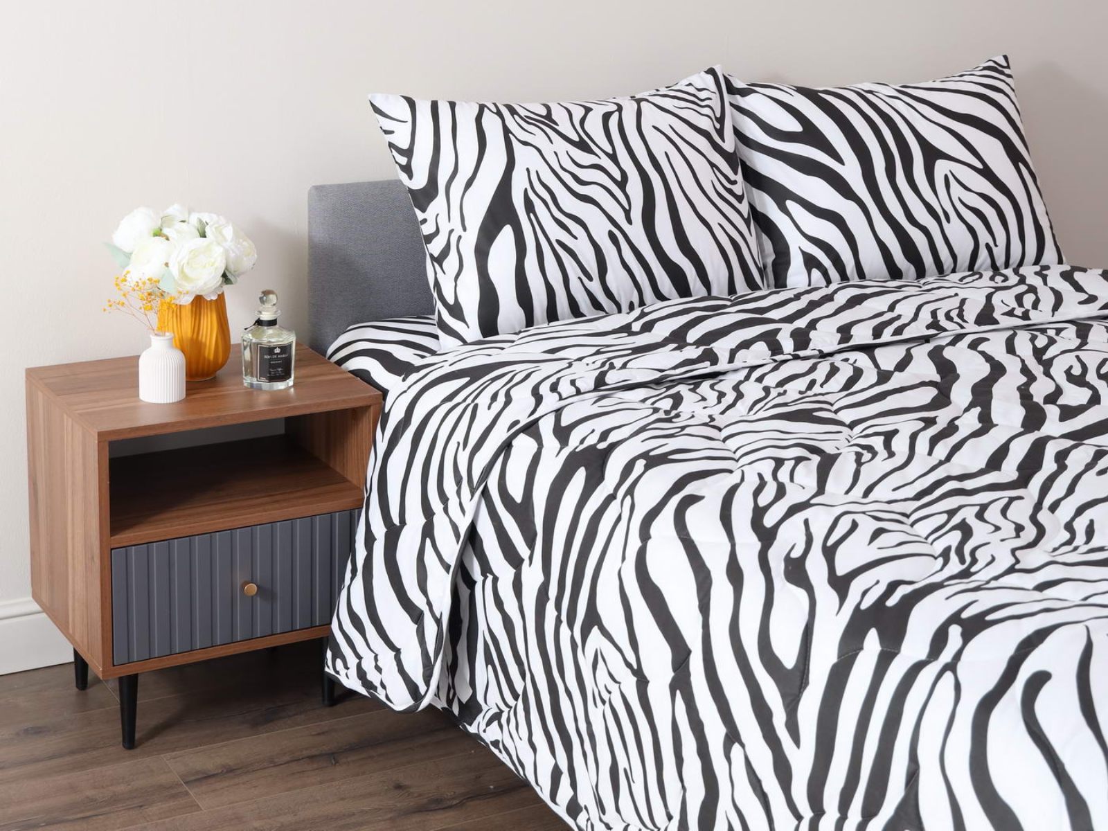 Комплект Мелвин легко стирается в обычной машине в бережном режиме и также легко гладится.