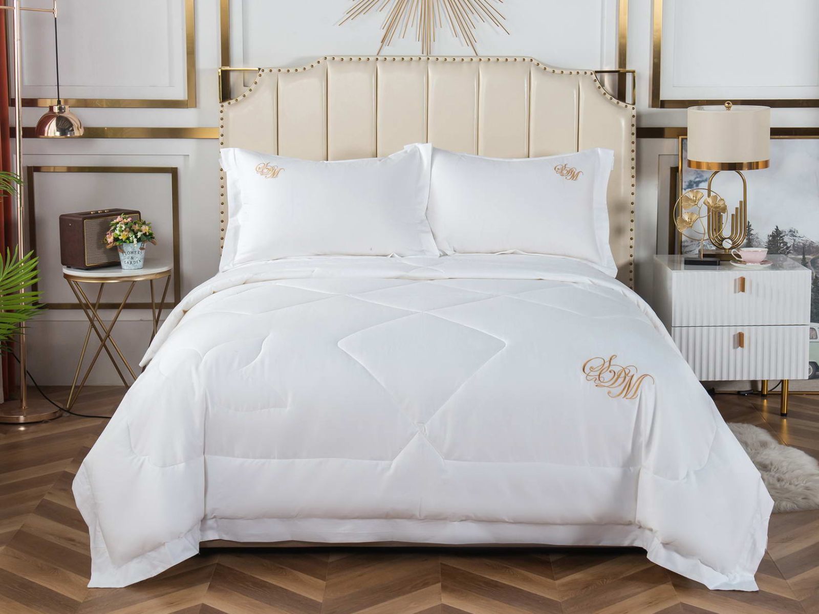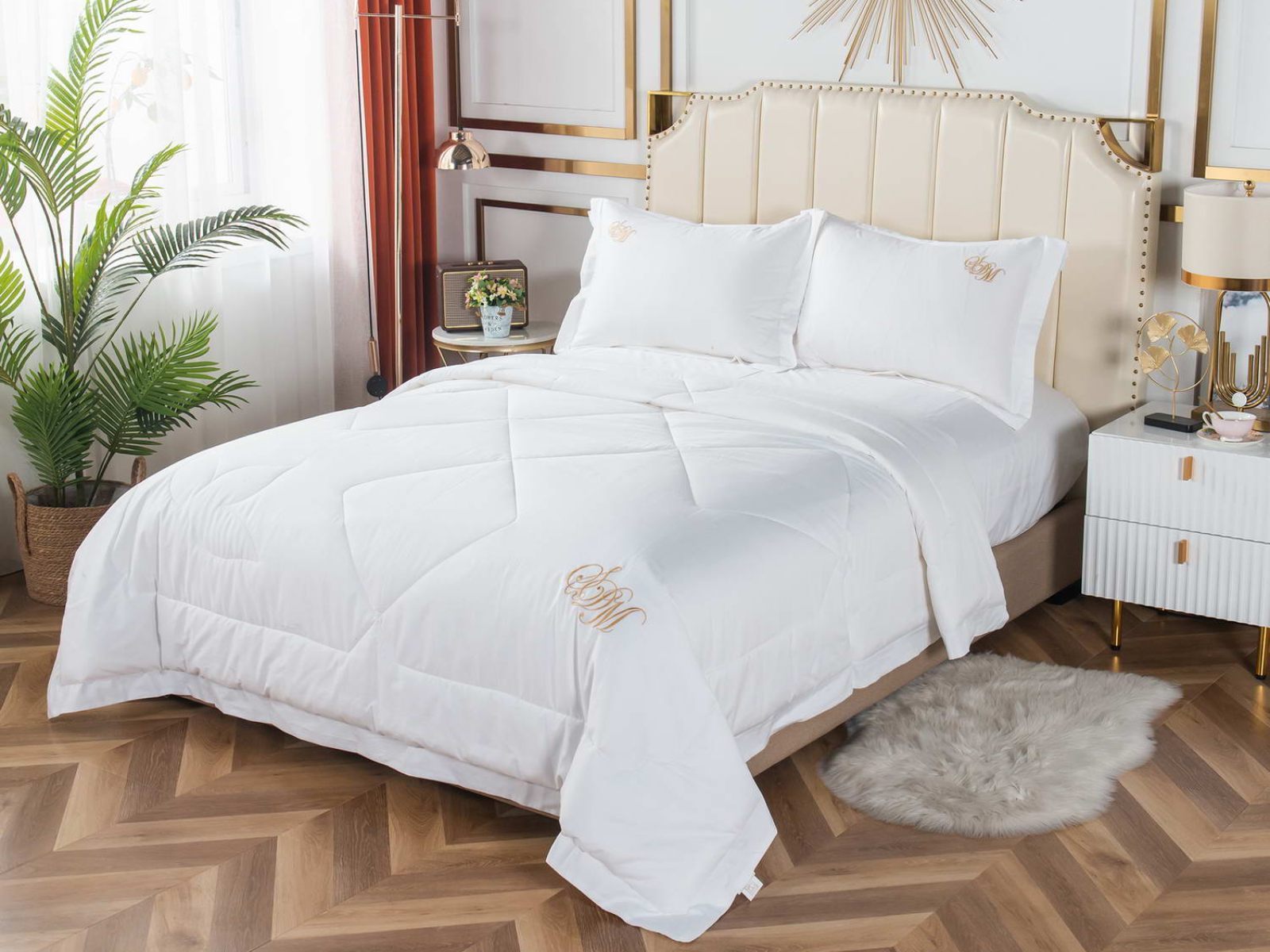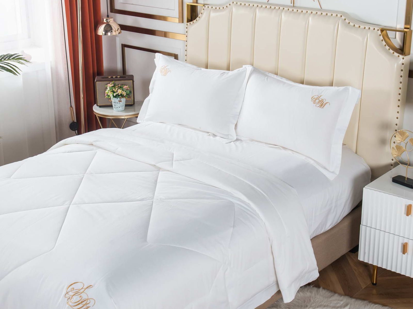 В комплект входят простыня, наволочки и одеяло. Одеяло простеганное, легкое и воздушное, его можно стирать в стиральной машине. Благодаря микроволокну в составе наполнителя для одеяла, оно всегда принимает свою начальную форму.