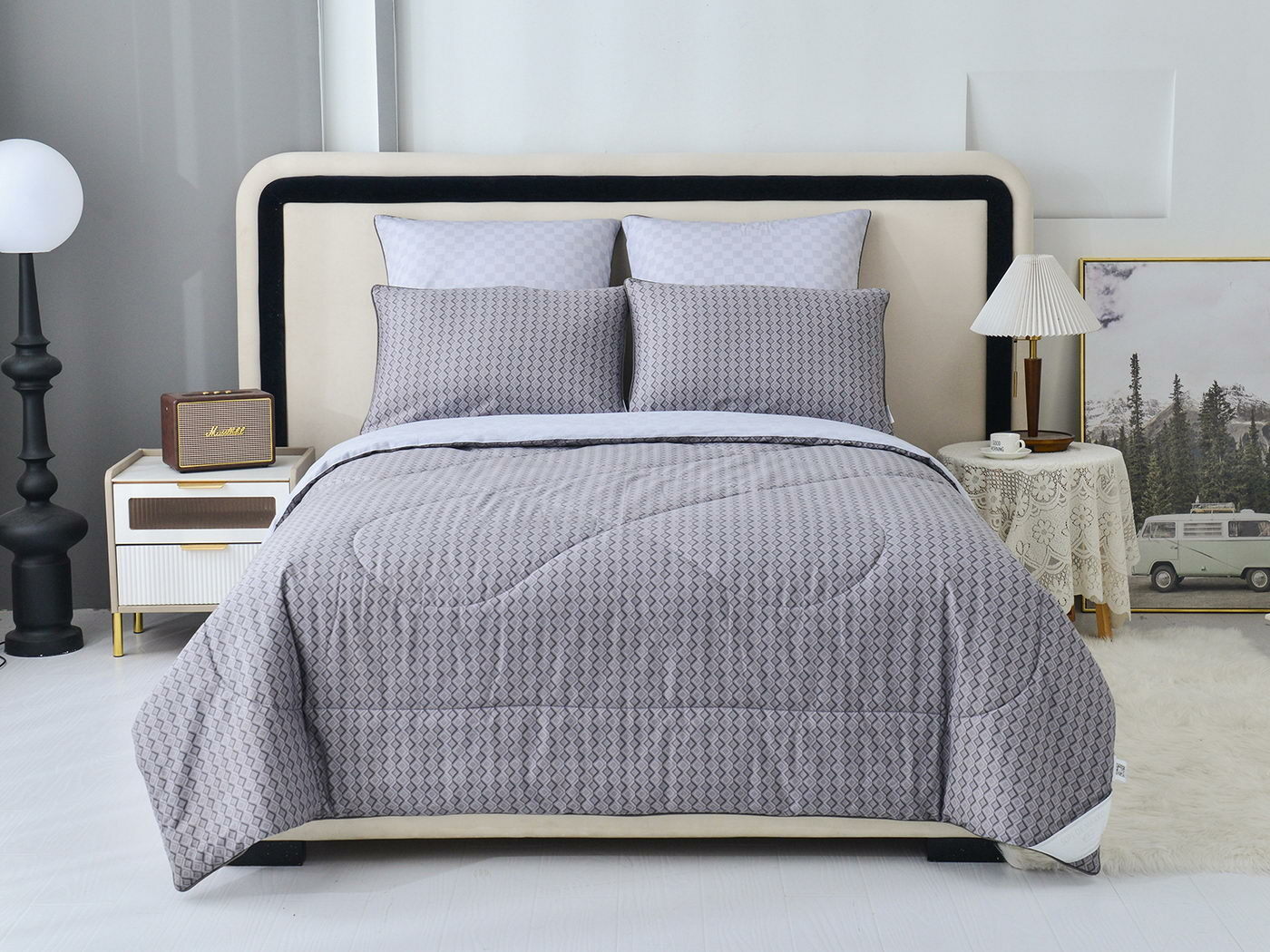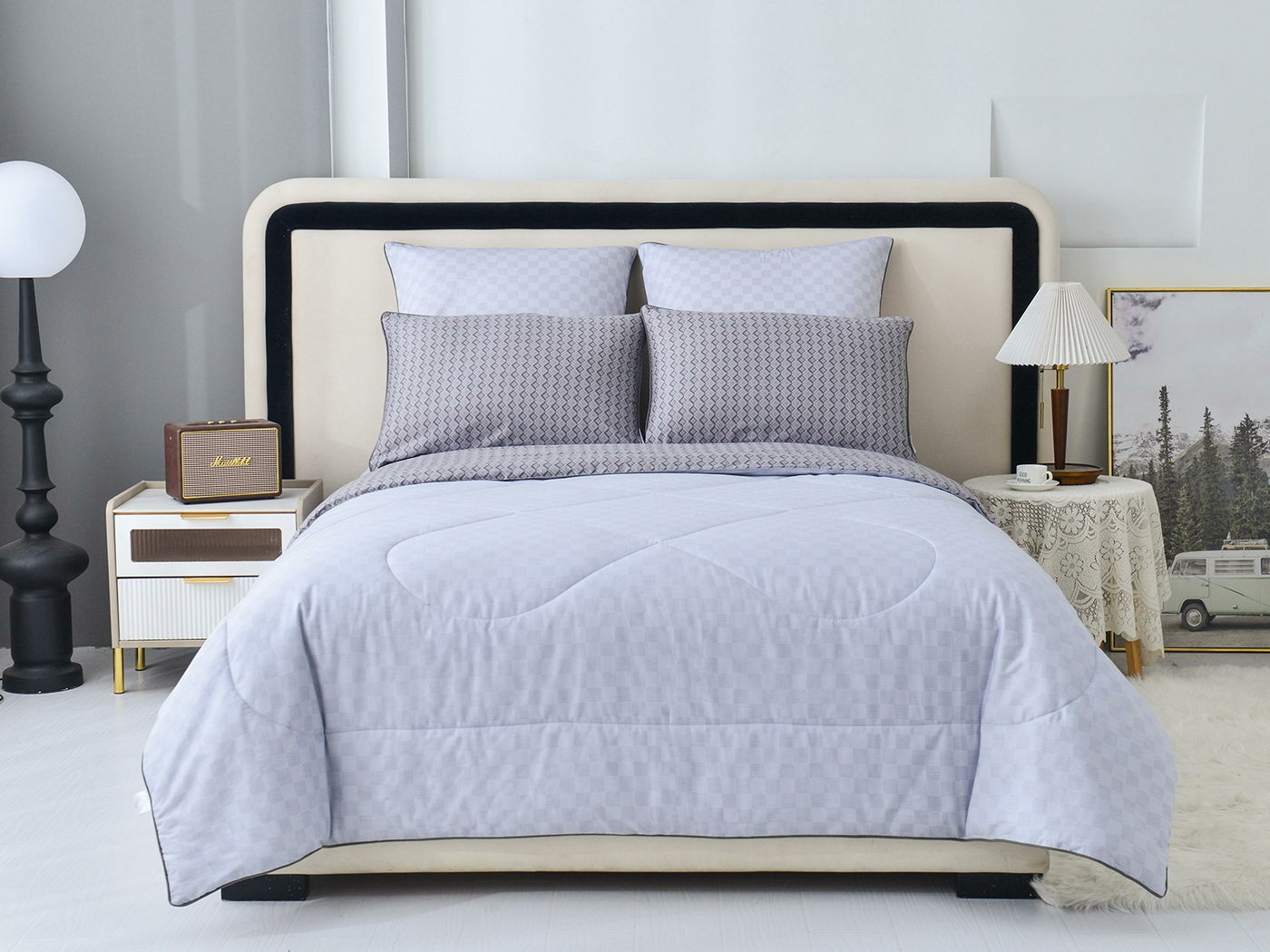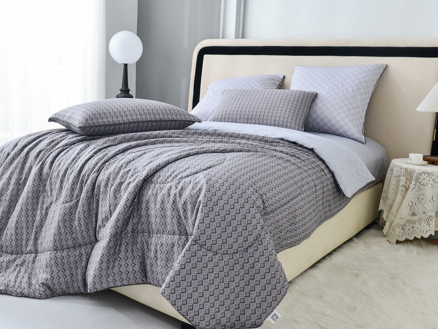 Особенность: двусторонняя модель, наволочки и одеяла декорированы кантом.