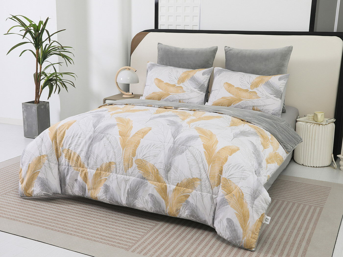 Обратная сторона одеяла – принтованный сатин натуральный хлопковый материал. На ощупь нежная и шелковистая, при этом комфортная и прочная ткань.