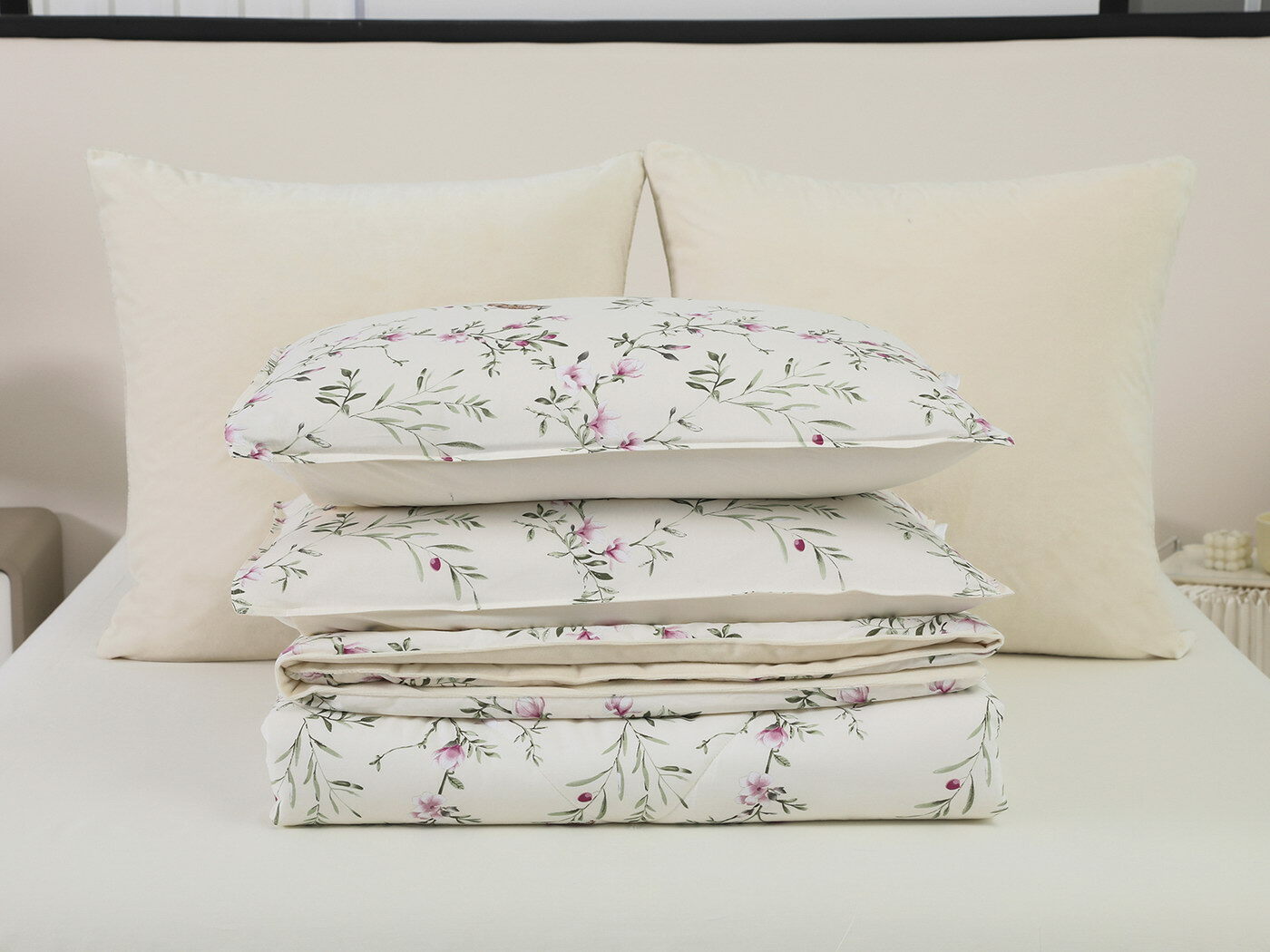 Обратная сторона одеяла – принтованный сатин натуральный хлопковый материал. На ощупь нежная и шелковистая, при этом комфортная и прочная ткань.
