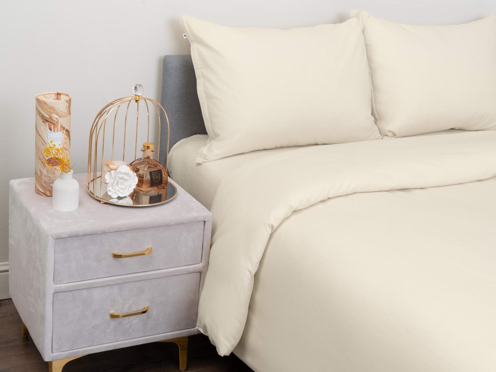 Комплект изготовлен из ранфорса, такая ткань отвечает всем современным стандартам и по уровню комфорта не уступает сатину. Ранфорс долговечен, лёгок и приятен на ощупь. Комплект Сэнди легко стирается в обычной машине в бережном режиме и также легко гладится.