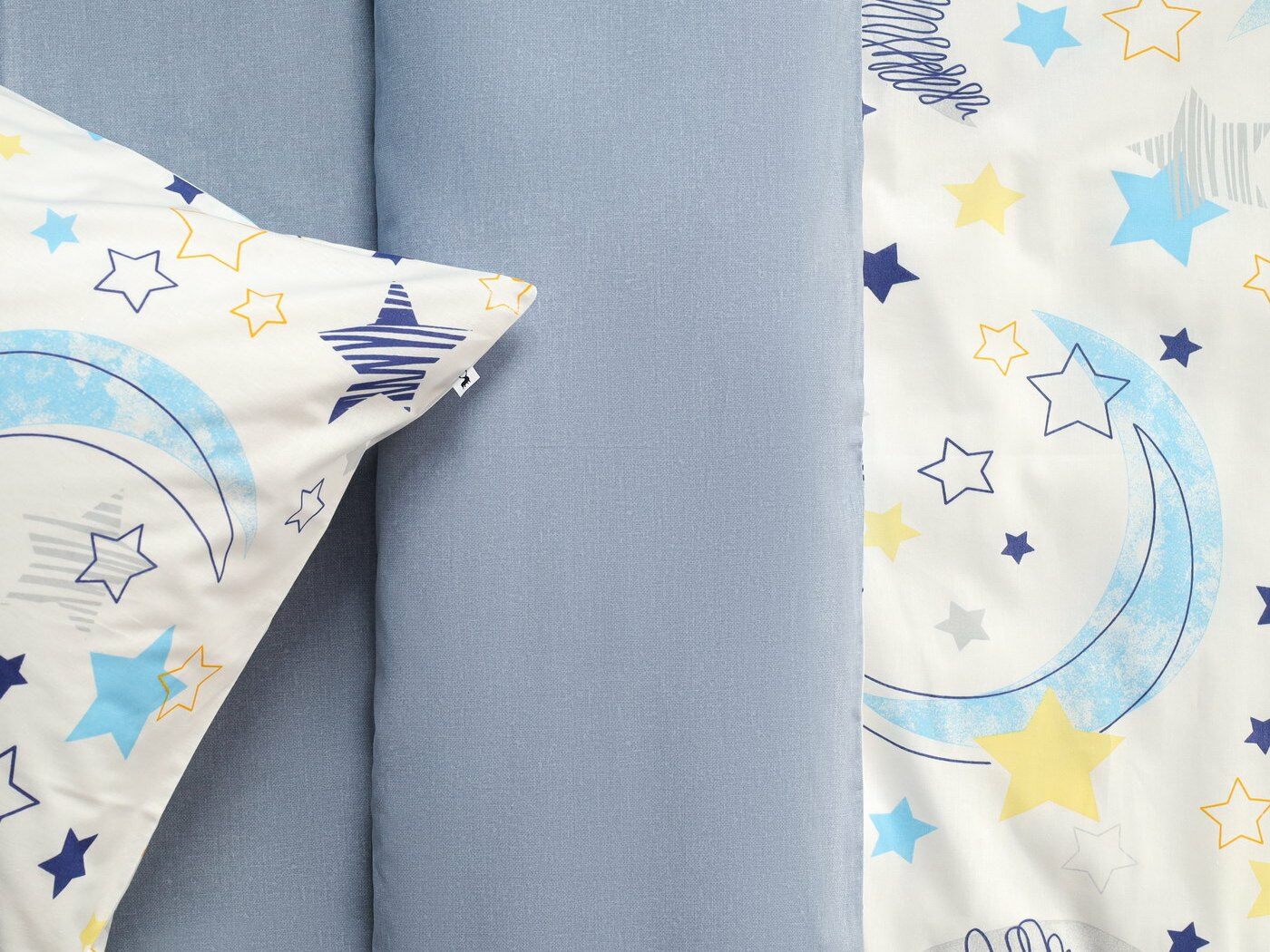 Пододеяльник –двусторонний: верх из ткани А (принтованная ткань), обратка из ткани В (однотонная рогожка), с потайной молнией.