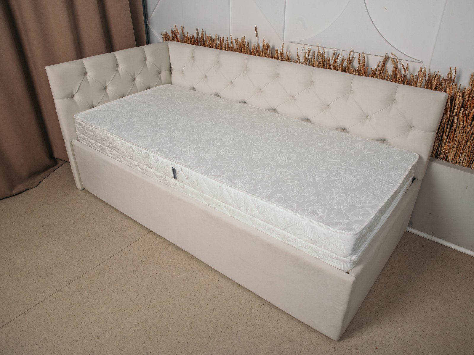 В комплектации с подъемным механизмом кровать имеет вместительный бельевой короб с двумя отделениями.