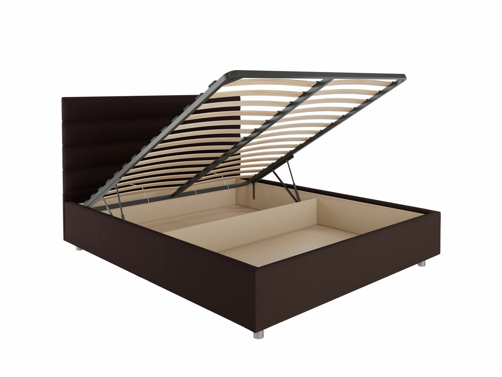 В комплектации с подъемным механизмом кровать имеет вместительный бельевой короб с двумя отделениями.