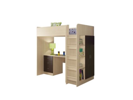 Кровать-чердак Теремок-3 представляет собой самодостаточный комплекс включающий в себя зону для сна, шкаф и полноценный рабочий стол. Прочная конструкция рассчитана на детей от 3 до 16 лет. Такая детская обеспечит разумную экономию пространства в вашем доме и полностью обеспечит выполнение всех многообразных функций детской и подростковой комнаты. Детская является универсальной, т.к. направление детской определяется при сборке.