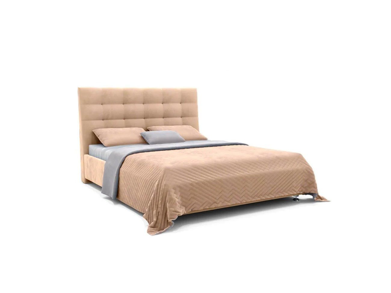Современная модель среди интерьерных кроватей. Оригинальный рельеф изголовья, выполненный в виде квадратов с декоративной строчкой задает определенный ритм всему интерьеру спальни.
