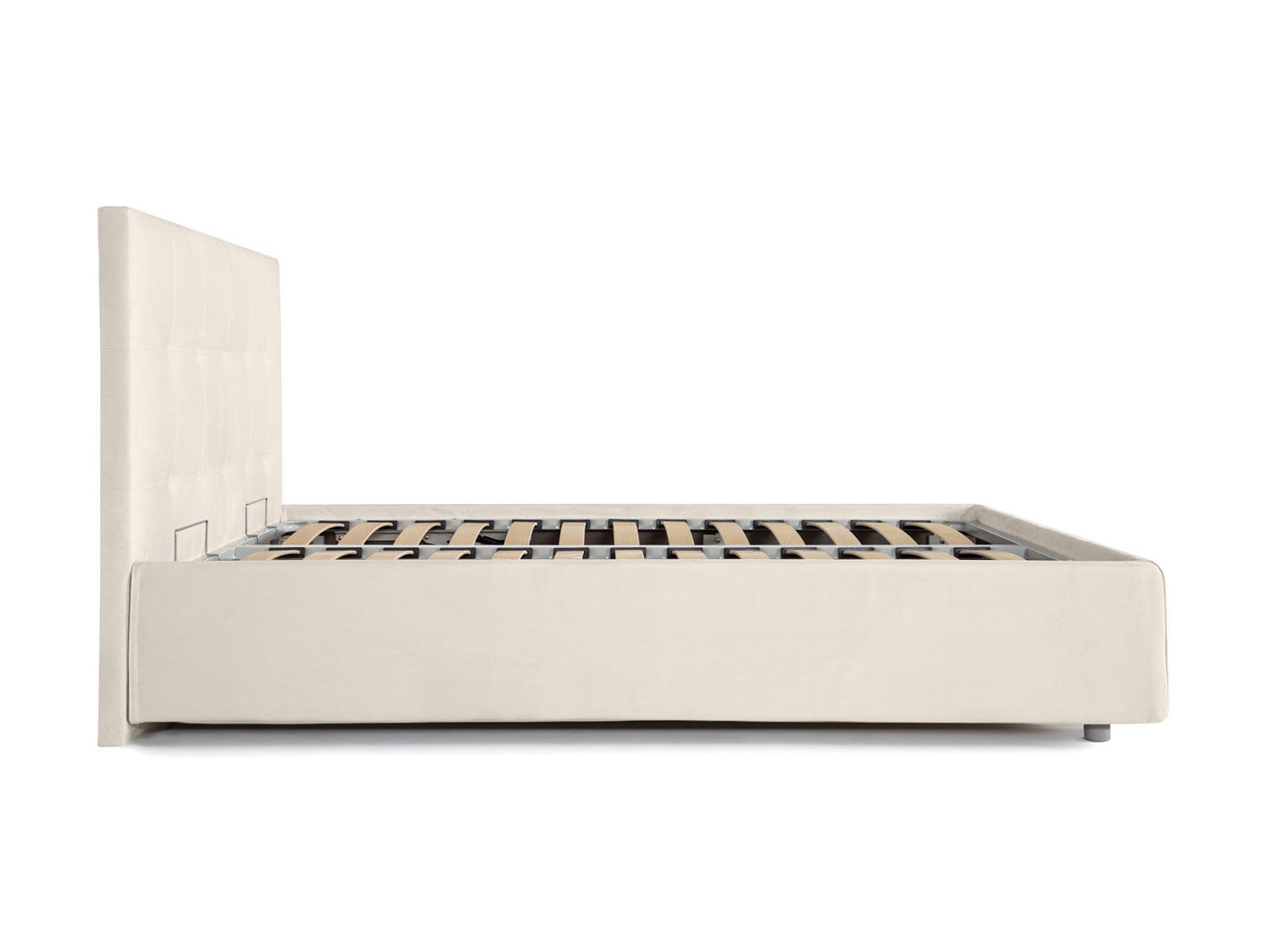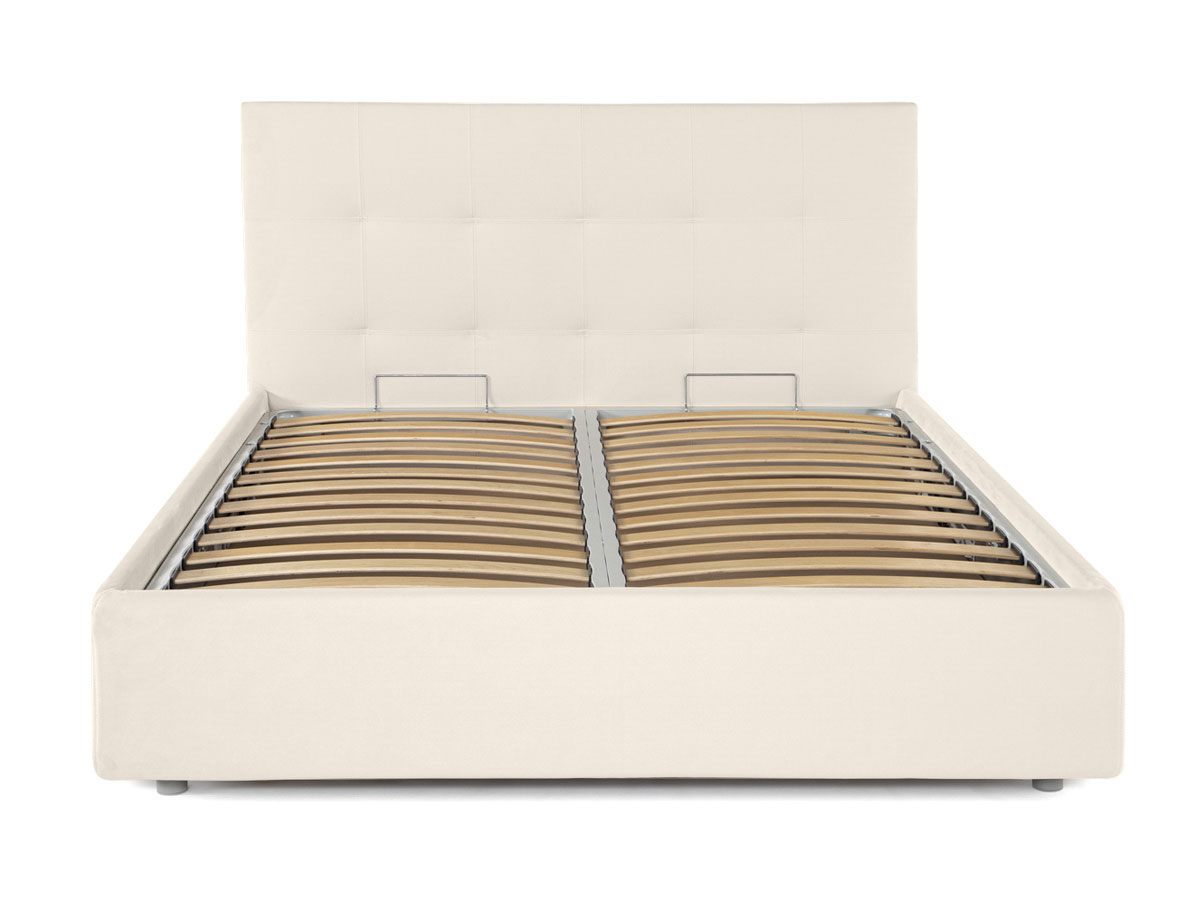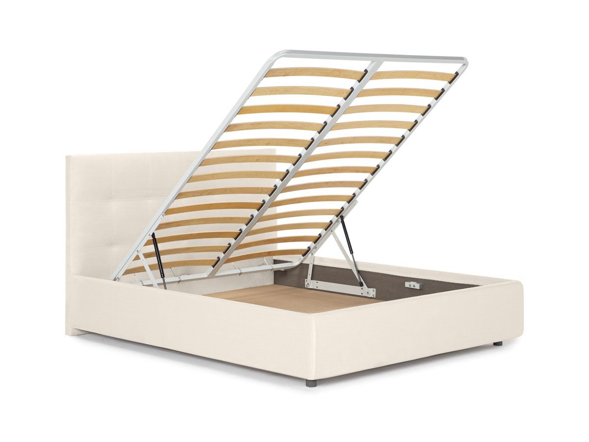 Кровать оснащена основанием с ламелями и подъемным механизмом. Рекомендуемая высота матраса до 27 см, вес матраса до 50 кг.
