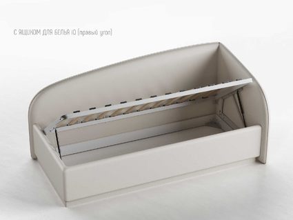 Одним движением руки Вы можете превратить кровать в диван! Закажите вместе с кроватью декоративный чехол на матрас к кровати Amelia из мебельной ткани (чехол приобретается отдельно, стоимость уточняйте у наших менеджеров), уберите постельное бельё в просторный ящик и вуаля — перед вами удобный и компактный угловой диван (особенно актуально для детских комнат или гостиных).