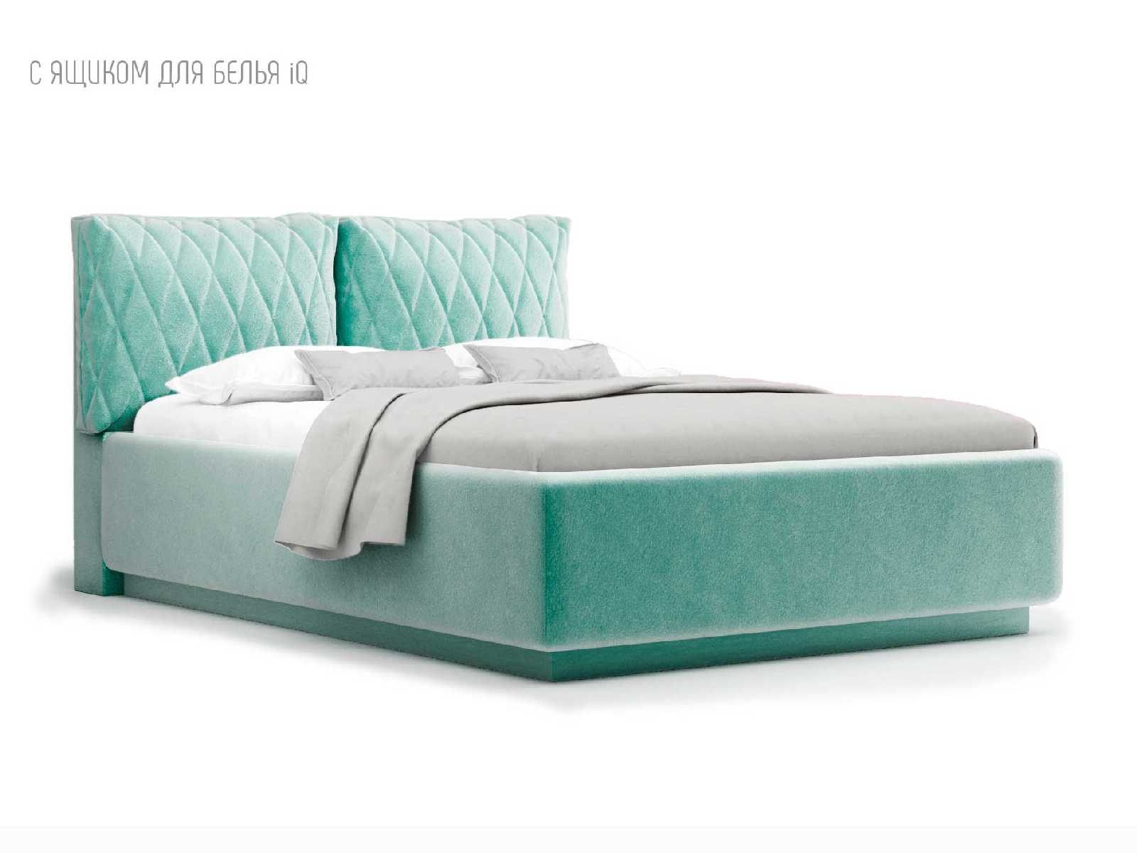 Кровать укомплектована IQ с подъемным механизмом и ящиком для белья без дна (дополнительная платная опция - дно к ящику IQ из HDF (ХДФ). Каркас кровати на цоколе, декоративный чехол на цоколе съёмный. Глубина ящика для белья - 30 см, без ограничения нагрузки на ящик.