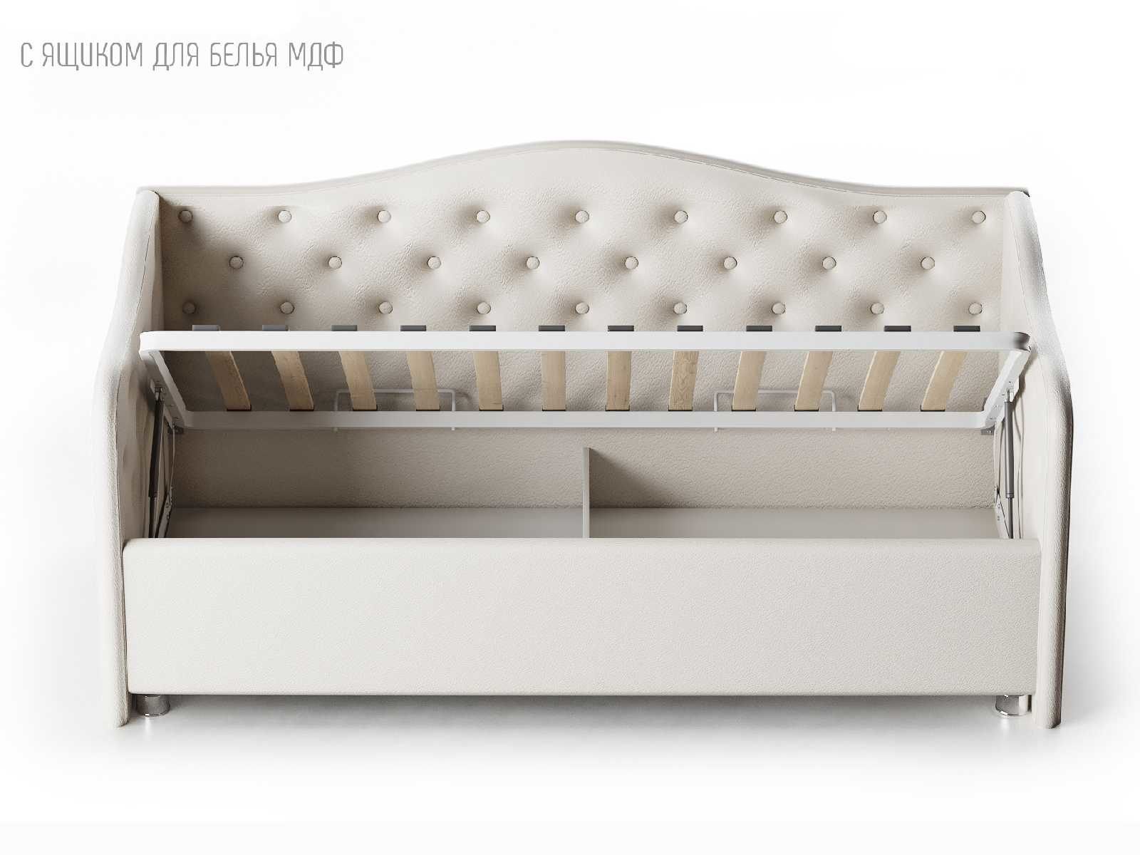 Прекрасная и воздушная кровать-софа Nuvola Elea идеально подойдет как взрослым, так и детям. Кровать выполнена в классическом стиле, изголовье-спинка и боковины кровати имеют плавные изгибы и декорированы изящными пуговицами.