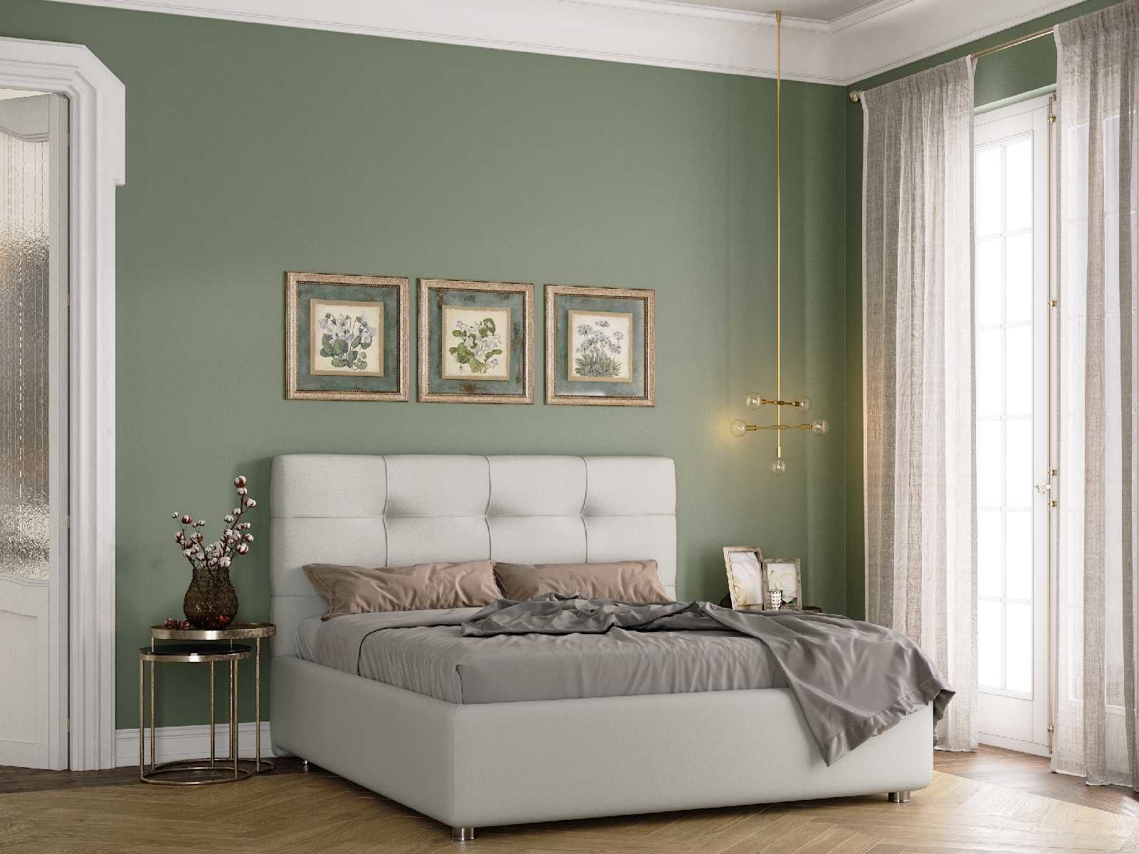 Интерьерная кровать Lauria (Лаурия) - нежность и уют вашей спальни. Мягкое и "пухлое" изголовье кровати оформлено в геометрическом стиле и разбито кантом, с неглубокими утяжками, на рисунок в виде прямоугольников — простое и одновременно стильное.