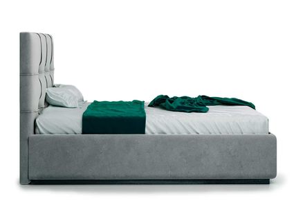 Кровать укомплектована IQ с подъемным механизмом и ящиком для белья без дна (дополнительная платная опция - дно к ящику IQ из HDF (ХДФ). Каркас кровати на цоколе, декоративный чехол на цоколе съёмный. Глубина ящика для белья - 30 см, без ограничения нагрузки на ящик.