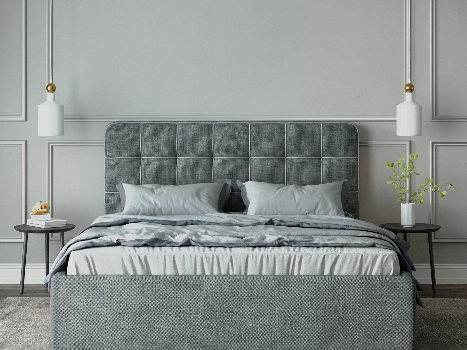Жемчужина в коллекции кроватей Nuvola. Нола - шикарная кровать с объёмным изголовьем, разделенным кантом на "квадраты". По вашему желанию кант может быть контрастным (светлее или темнее основной ткани, дополнительная платная опция).